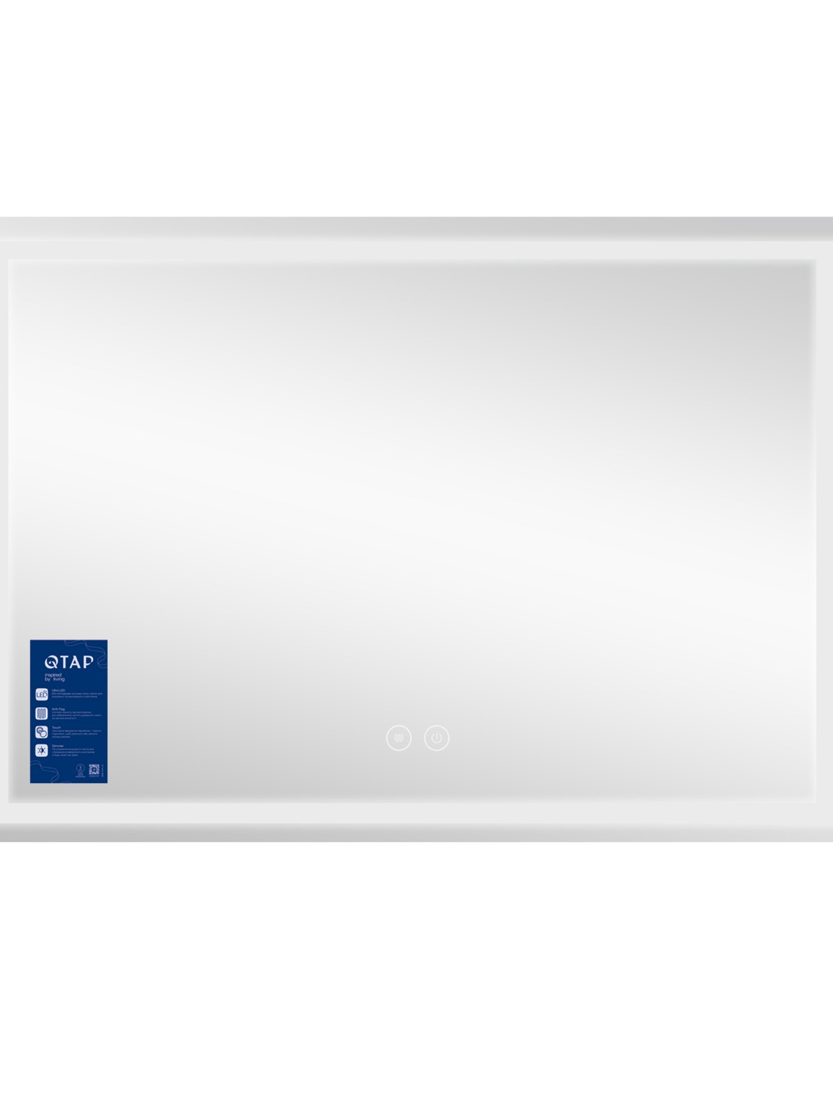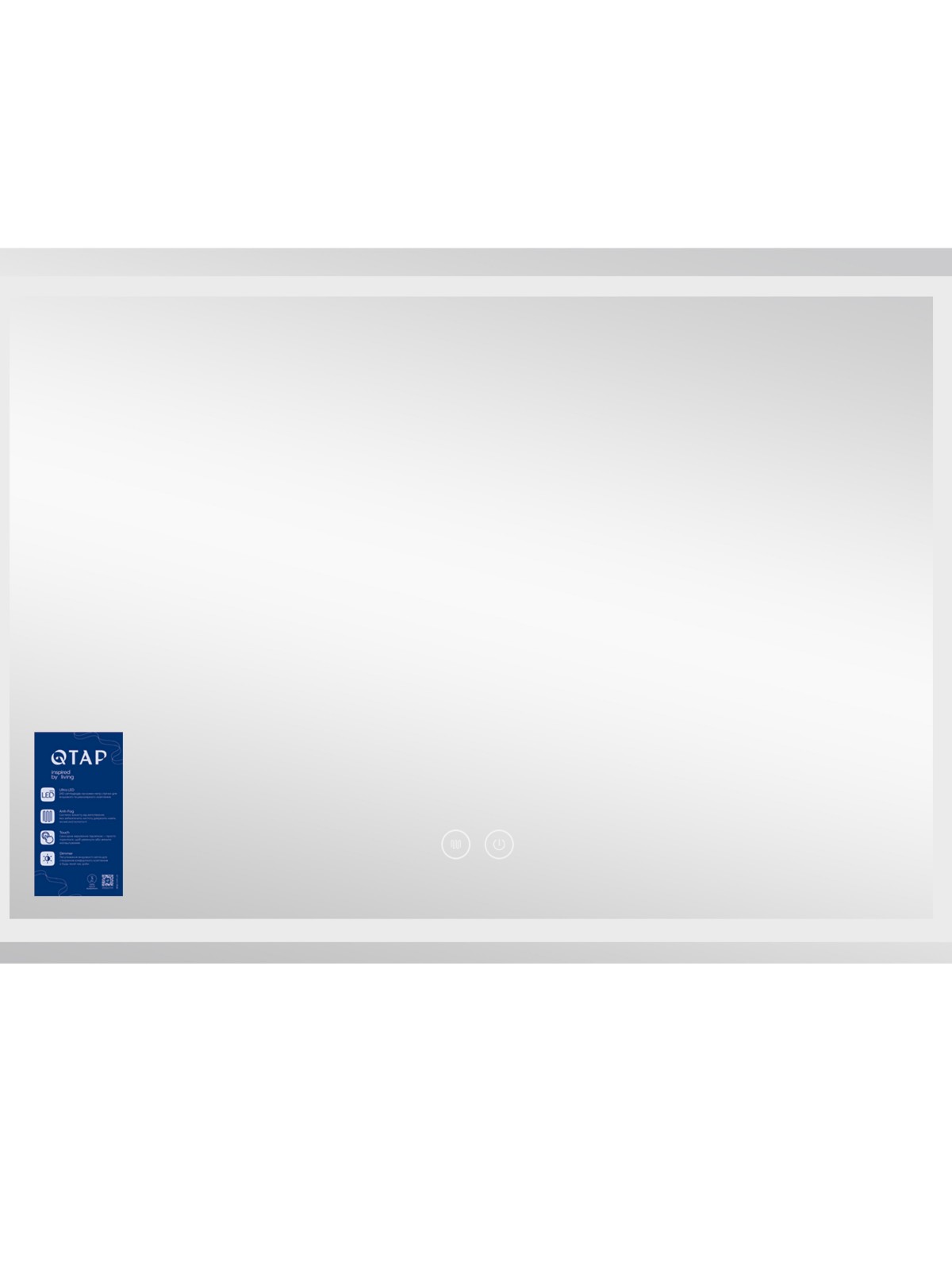 Дзеркало Qtap Mideya MI1 з антизапотіванням 1200х800 QT2078F613W укомплектоване світлодіодною LED-стрічкою з рівним, насиченим і яскравим світлом білого кольору. LED-стрічка не створює негативного впливу на зір людини. У дзеркалі передбачено функцію ANTI-FOG - захист від запотівання. Керування здійснюється за допомогою двох сенсорних кнопок на передній панелі дзеркала.