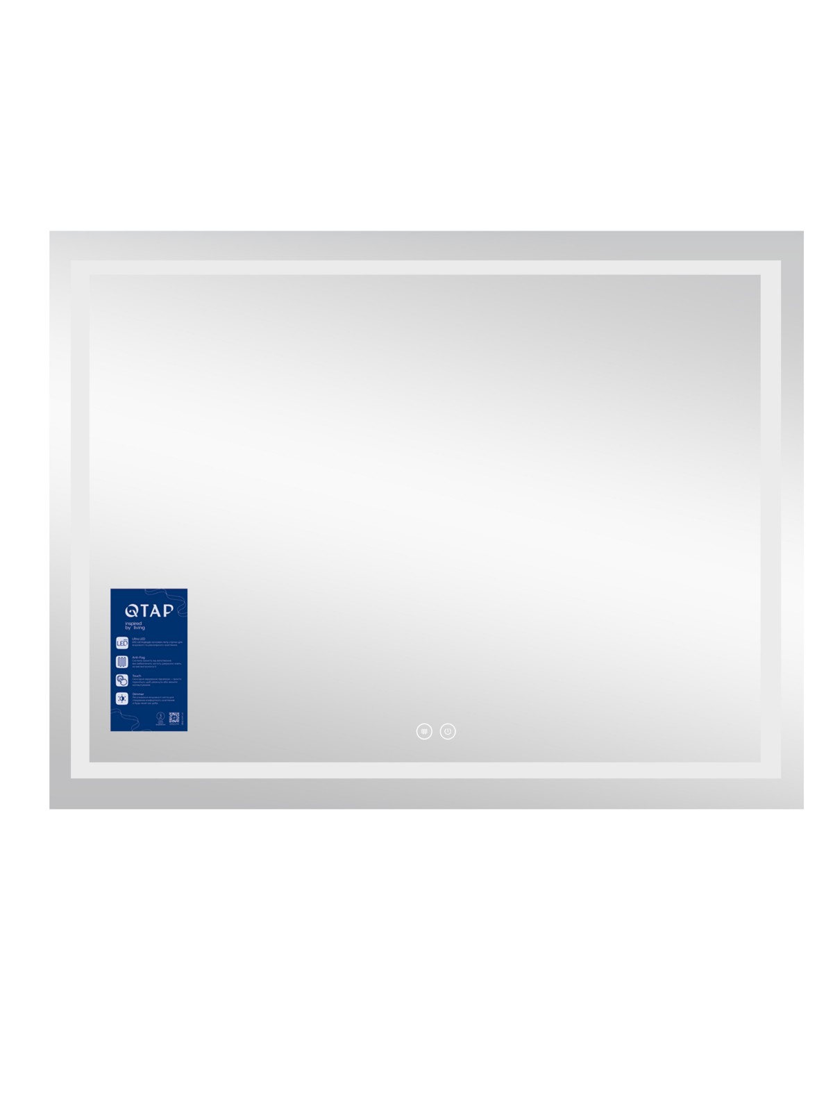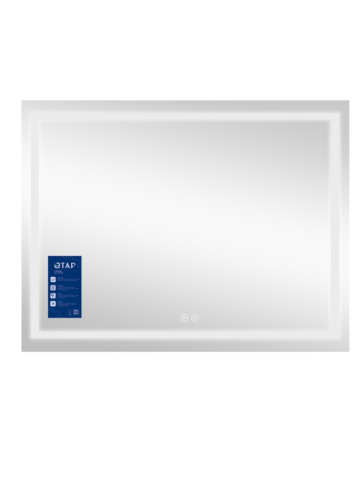 Дзеркало Qtap Mideya MI8 з антизапотіванням 700х900 QT2078NCF9070W укомплектоване світлодіодною LED-стрічкою з рівним, насиченим світлом холодного білого кольору. LED-стрічка не створює негативного впливу на зір людини. У дзеркалі передбачено функцію ANTI-FOG - захист від запотівання. Керування здійснюється двома сенсорними кнопками на передній панелі дзеркала, димер дає змогу регулювати яскравість підсвічування.