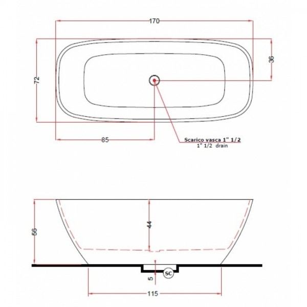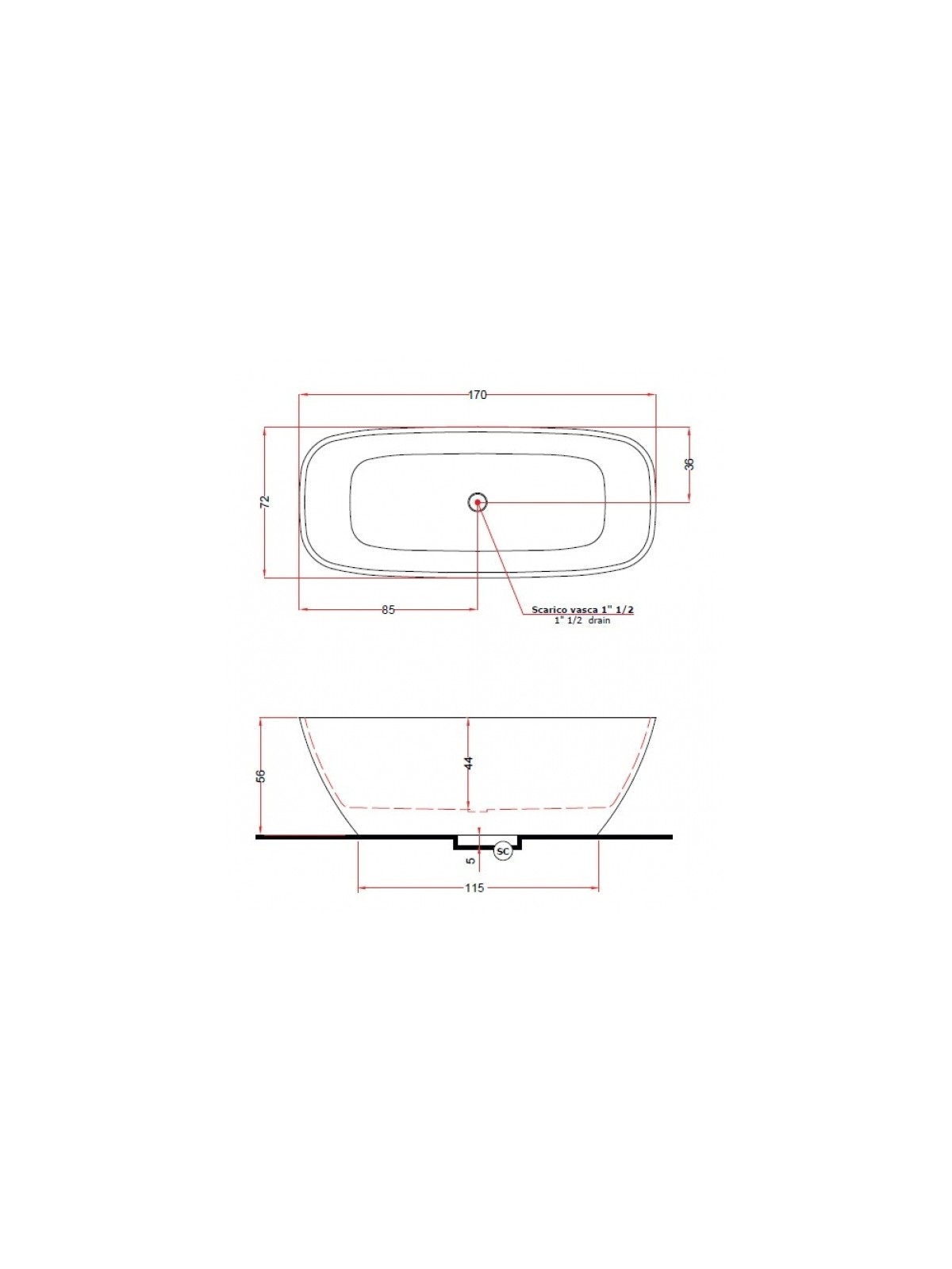 V297BO/V2970XBO800S BRIO Ванна із штучного каменю 170 x 72 x 56h, білий матовий (1 сорт)