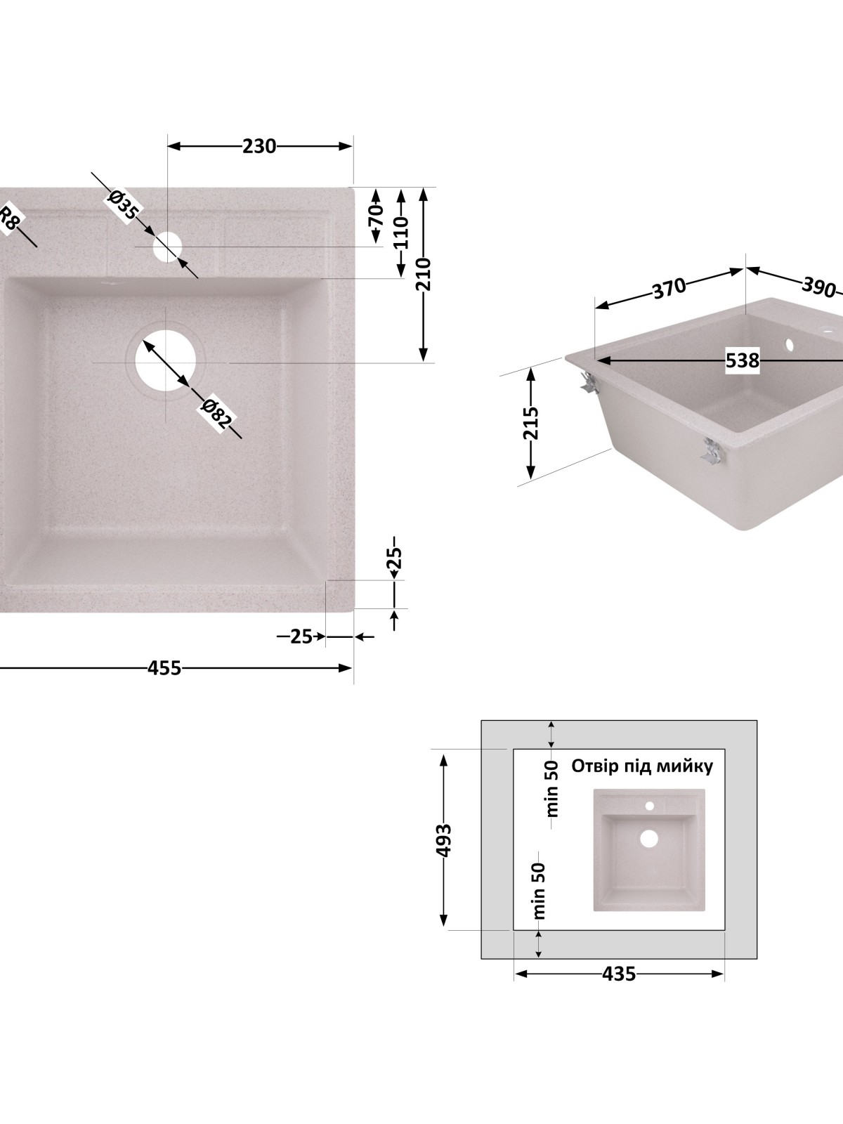 Комплектація: Мийка, сифон, злив/перелив, корзинчастий вентиль, кріплення.