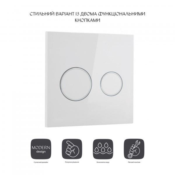 Панель змиву для унітаза Qtap Nest UNI QT0211P01V1176W - це сучасне рішення при оснащенні санвузла. Виріб виготовлено з якісного ABS пластику, тип управління зливом - механічний. Особливістю панелі є двохклавішний блок змиву, який дозволяє економити витрати води. Панель змиву з глянцевою білою поверхнею гармонійно поєднується з меблями ванної кімнати і облицювальною плиткою.