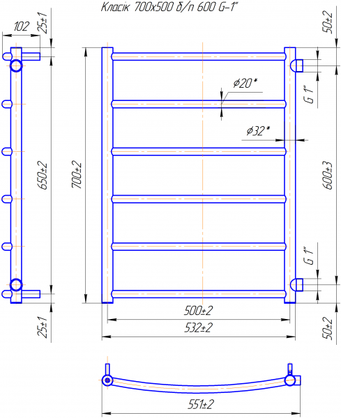 Рушникосушарка "Маріо" Класік 700х550/600 Б/П 1" білий глянець. Розміри: висота - 700 мм, ширина - 550 мм, глибина 105 мм, міжцентрова відстань для підключення - 600 мм, діаметр підключення G1'''. Варіанти підключення: нижнє, діагональне та бічне. Кількість ребер - 6. Виготовлена з полірованої нержавіючої сталі без хромування. Для всесезонної роботи водяну модель можна переобладнати на комбіновану, встановивши ТЕН, рекомендована потужність 120 Вт. Сумісні аксесуари: поворотні полиці та навісні гачки для збільшення функціональності. Рекомендовано підключати рушникосушарку за допомогою кранів Маріо. Гарантія - 50 років в закритій системі опалення, 5 років у централізованій, на фабування (декоративне покриття) - 2 роки.