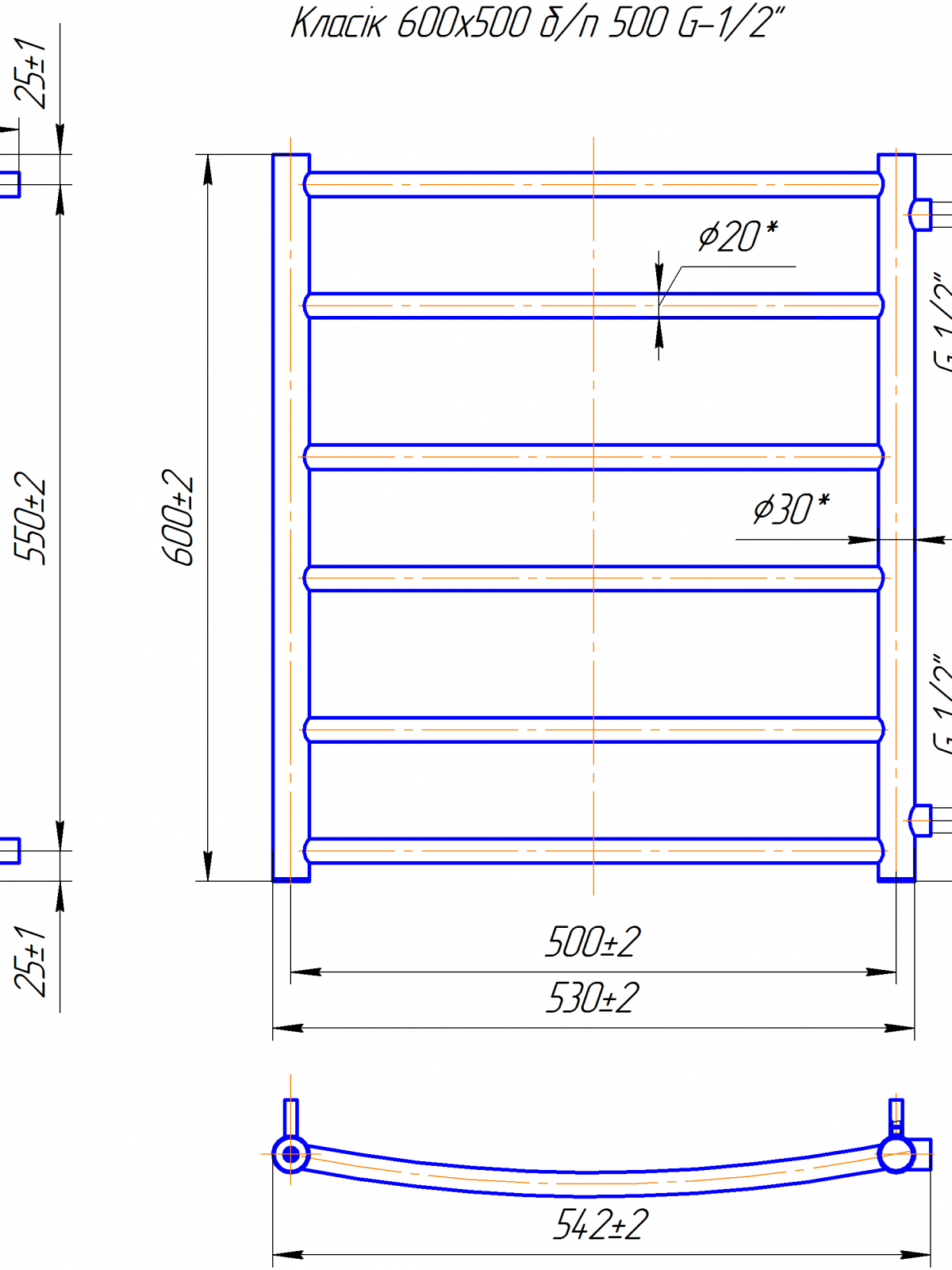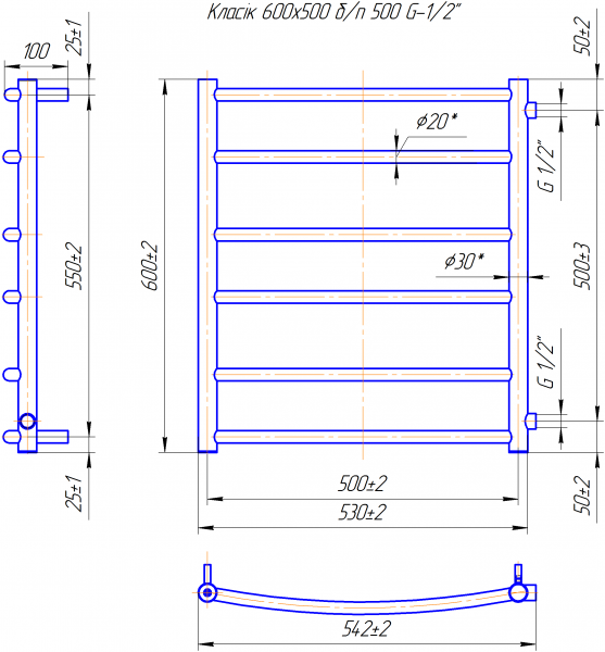 Рушникосушарка "Маріо" Класік 600х550/500 Б/П 1/2" білий мат. Розміри: висота - 600 мм, ширина - 550 мм, глибина 105 мм, міжцентрова відстань для підключення - 500 мм, діаметр підключення G1/2'''. Варіанти підключення: нижнє, діагональне та бічне. Кількість ребер - 6. Виготовлена з полірованої нержавіючої сталі без хромування. Для всесезонної роботи водяну модель можна переобладнати на комбіновану, встановивши ТЕН, рекомендована потужність 120 Вт. Сумісні аксесуари: поворотні полиці та навісні гачки для збільшення функціональності. Рекомендовано підключати рушникосушарку за допомогою кранів Маріо. Гарантія - 50 років в закритій системі опалення, 5 років у централізованій, на фабування (декоративне покриття) - 2 роки.
