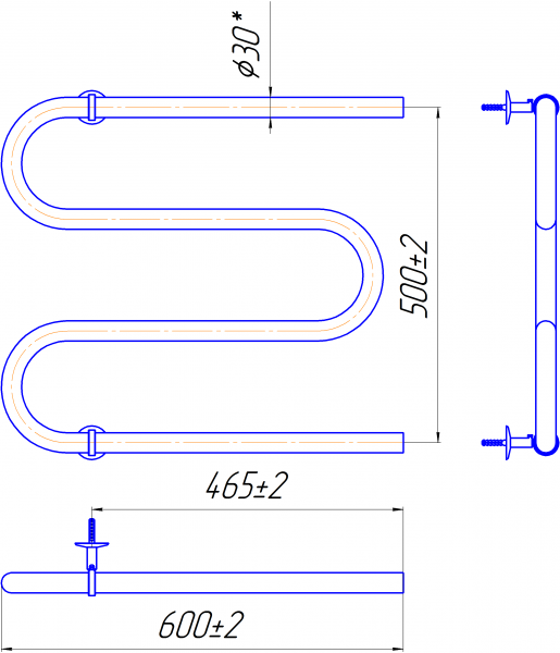 Рушникосушарка "Маріо" Змійка 30 530х600/500 чорний мат. Розміри: висота - 530 мм, ширина - 600 мм, глибина 80 мм, міжцентрова відстань для підключення - 500 мм, діаметр підключення G1/2'''. Варіанти підключення: нижнє, діагональне та бічне. Кількість ребер - 4. Виготовлена з полірованої нержавіючої сталі без хромування. Для всесезонної роботи водяну модель можна переобладнати на комбіновану, встановивши ТЕН, рекомендована потужність . Сумісні аксесуари: поворотні полиці та навісні гачки для збільшення функціональності. Рекомендовано підключати рушникосушарку за допомогою кранів Маріо. Гарантія - 50 років в закритій системі опалення, 5 років у централізованій, на фабування (декоративне покриття) - 2 роки.
