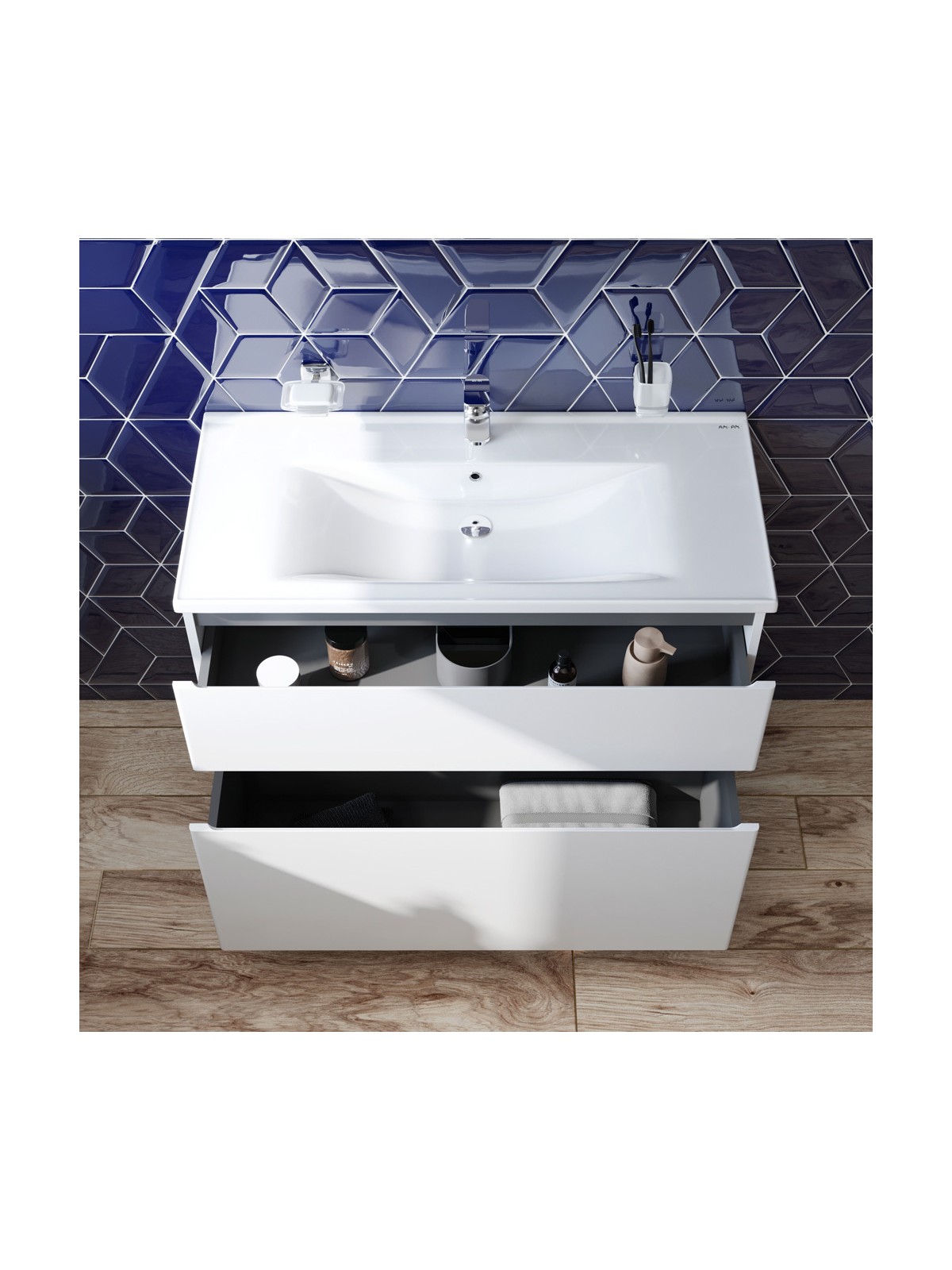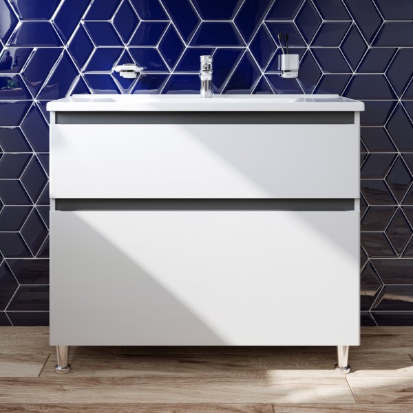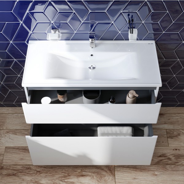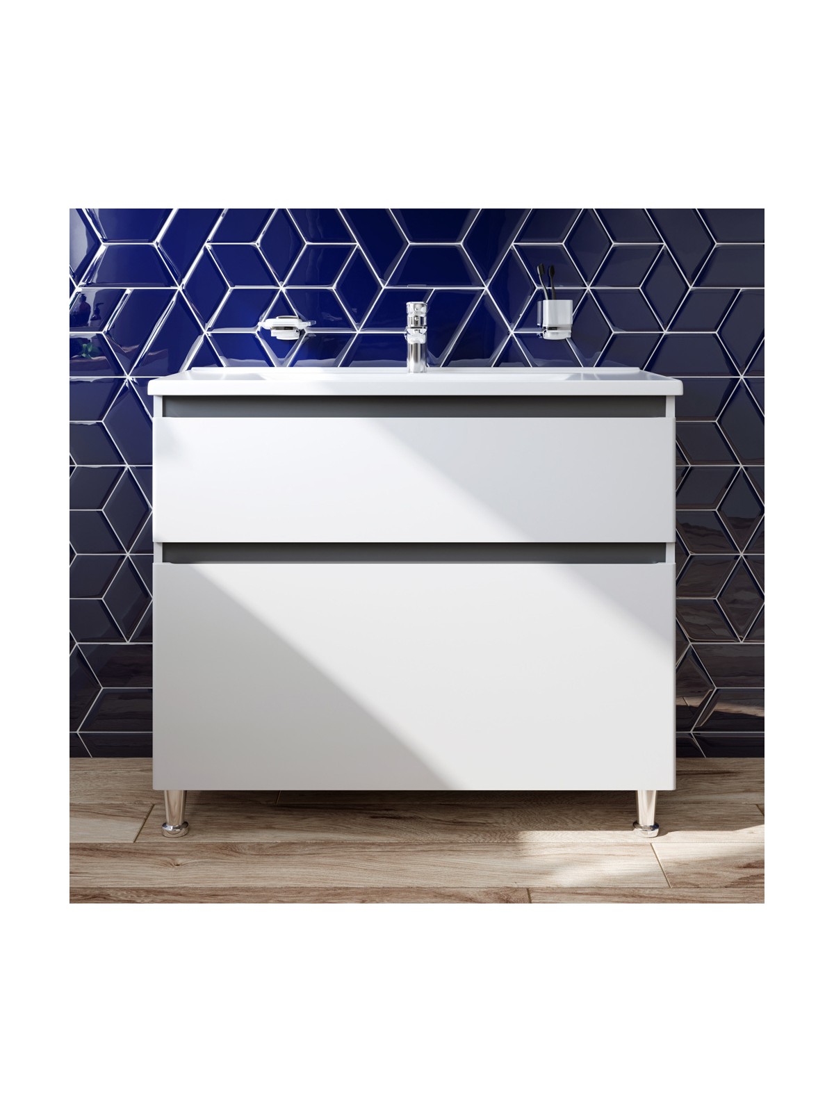M85-FSX1002-WC1002WG38 X-Joy, База з раковиною, на підлогу, 100 см, 2 ящика, білий глянець (1 сорт)