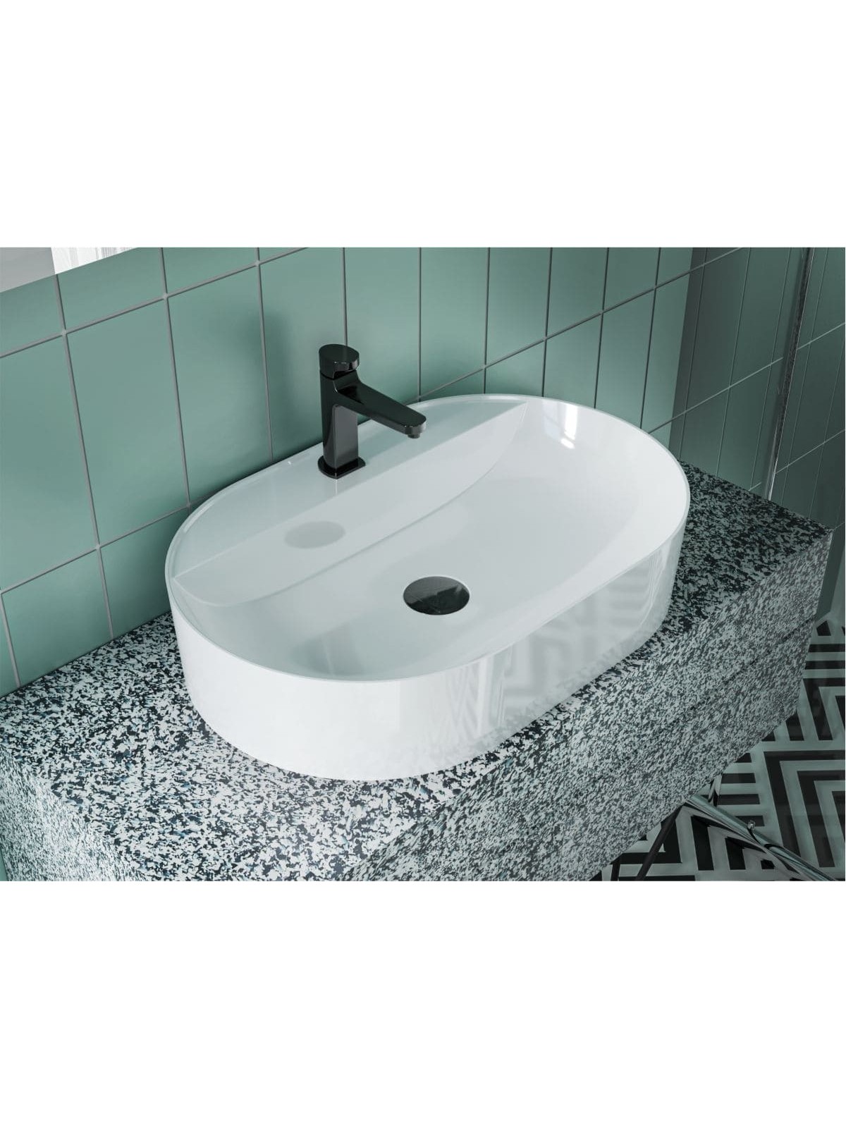 Овальний за формою чаші раковина має тип монтажу - накладний, врахуйте це перед замовленням меблів у ванну кімнату.