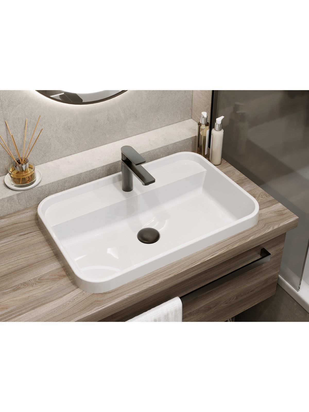 Прямокутний за формою чаші раковина має тип монтажу - врізний;накладний, врахуйте це перед замовленням меблів у ванну кімнату.