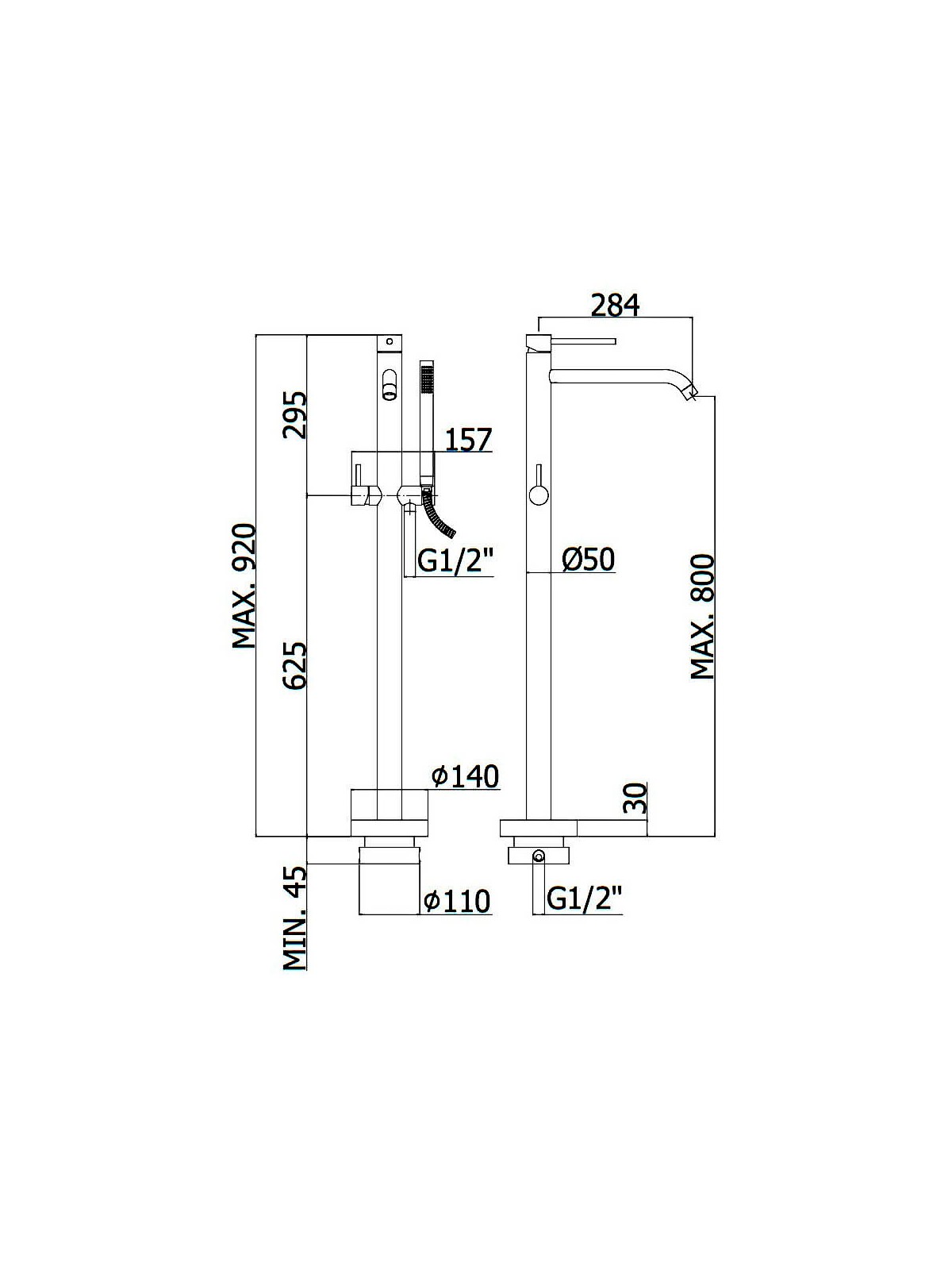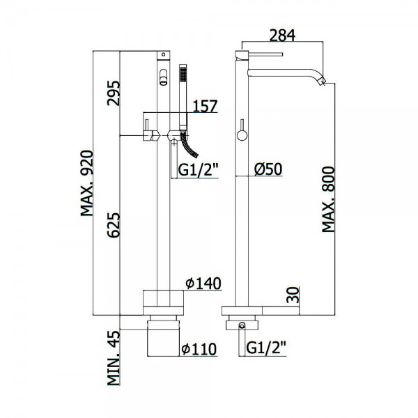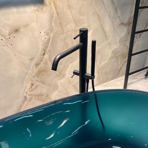 LIG 032 NO LIGHT Змішувач ванни з підлоги, з ручним душем, чорн.мат (1 сорт)