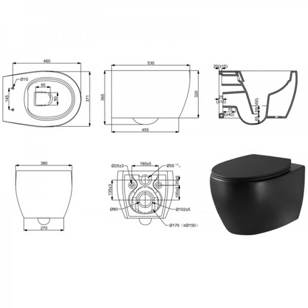 3020155B ACQUA NEW Унітаз підвісний безобідковий без кришки, чорний матовий (1 сорт)
