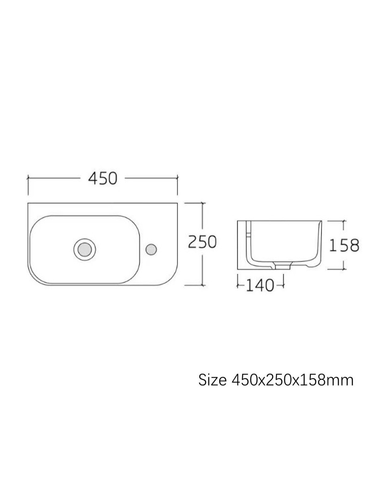 450250R Do It Раковина підвісна/меблева 450х250 см, 1 отвір під змішувач справа, білий глянець (1 сорт)