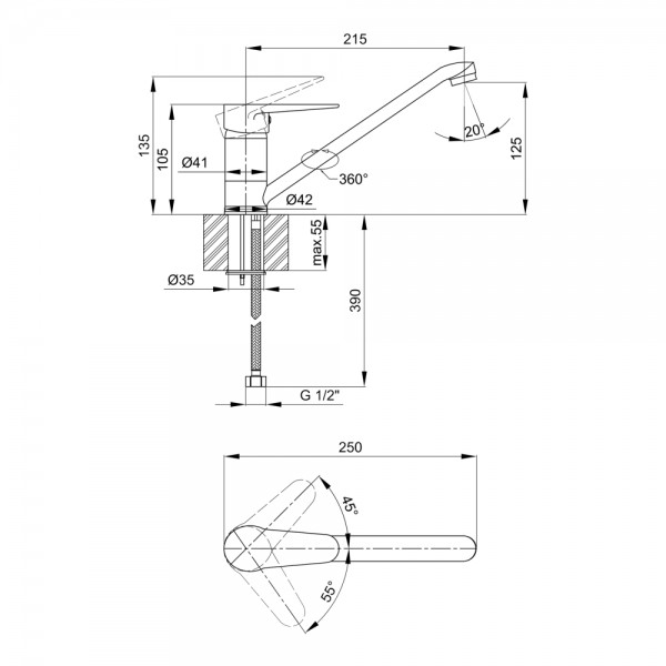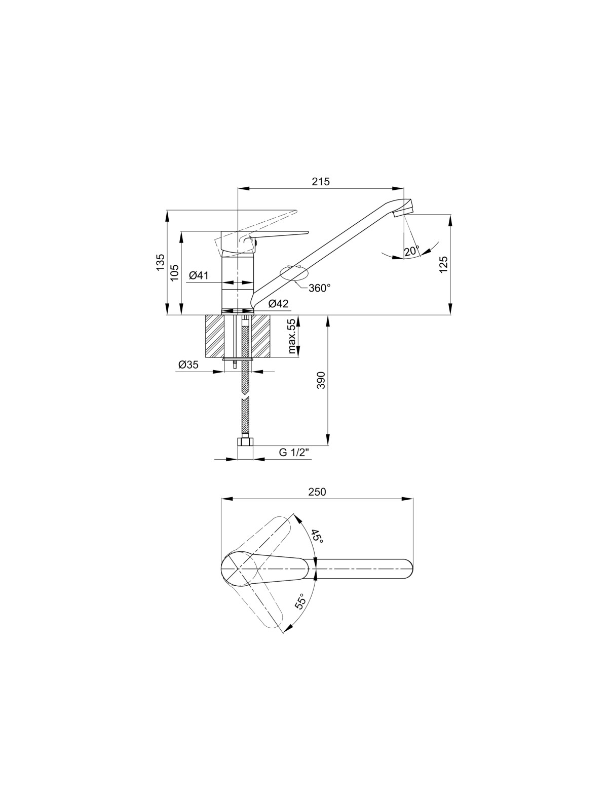 Додаткові характеристики: Довжина гнучкого підводу - 390 мм.
