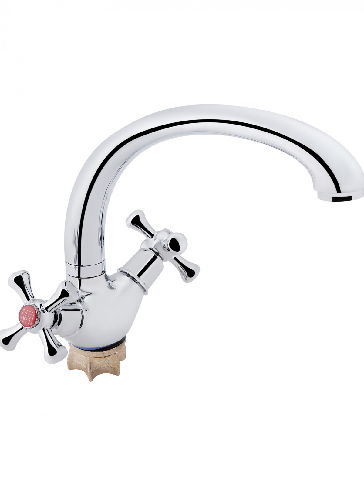 Змішувач для кухні Lidz (CRM) 75 21 271F-3 виготовлений з цинку. Завдяки глянсовому хромованому покриттю має оригінальний зовнішній вигляд. Виконаний в класичному стилі, з вентильними ручками для перемикання потоку холодної та гарячої води.