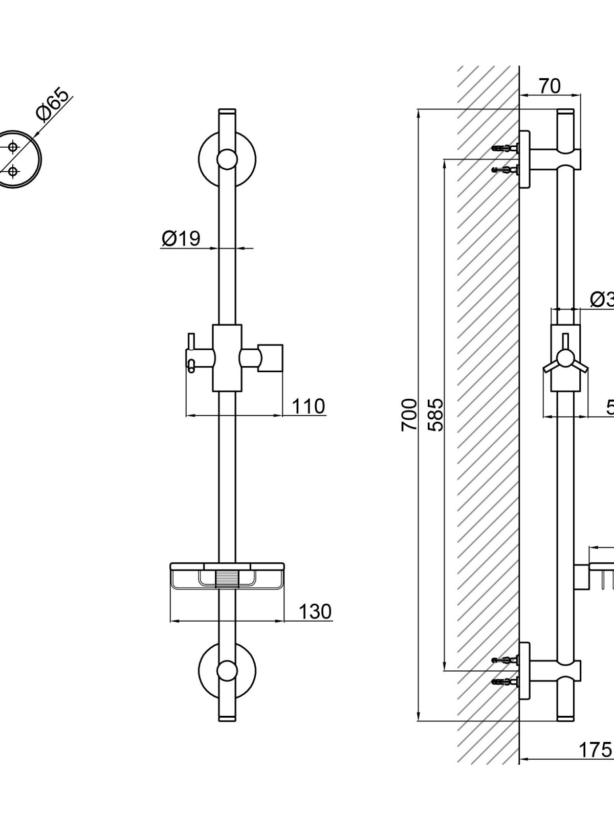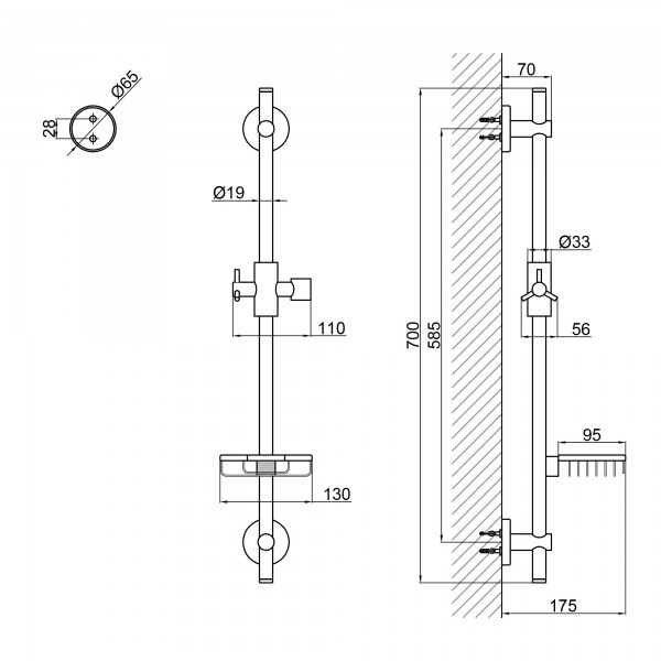 Габаритні розміри виробу (ШхГхВ), мм: 130х175х700