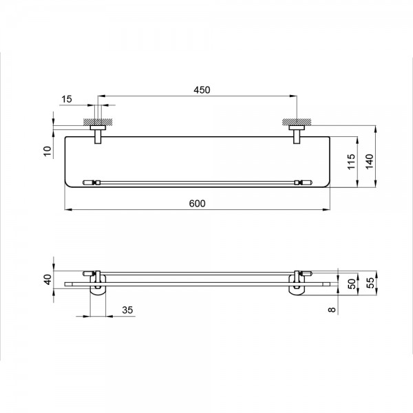 Габаритні розміри виробу (ШхГхВ), мм: 600х140х55