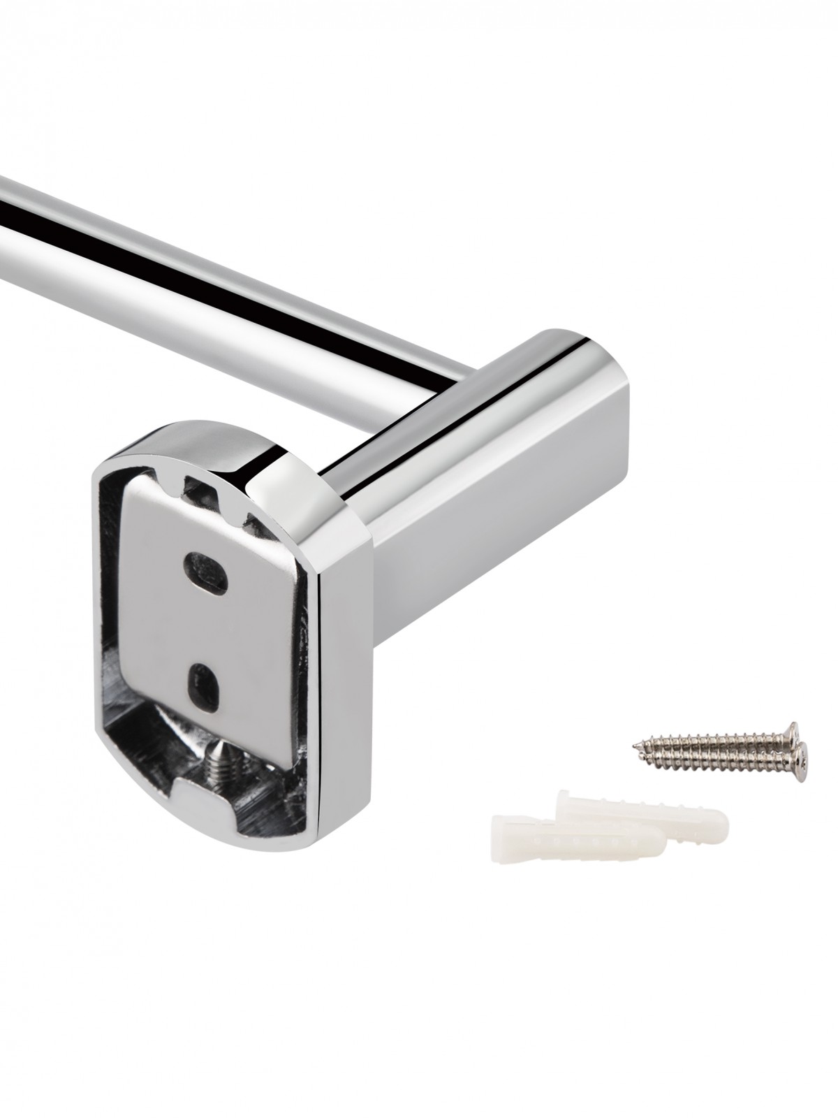Тримач для рушників Qtap Liberty CRM 1124 виконаний з латуні з хромованою глянсовою поверхнею, яка легко миється та не піддається корозії. Тримач складається з кріплення й стержня довжиною 610 мм, що дозволяє розмістити відразу два рушники або один банний. Прихований монтаж не порушує дизайну ванної кімнати й не псує обробку. На тримач нанесено фірмовий логотип виробника.