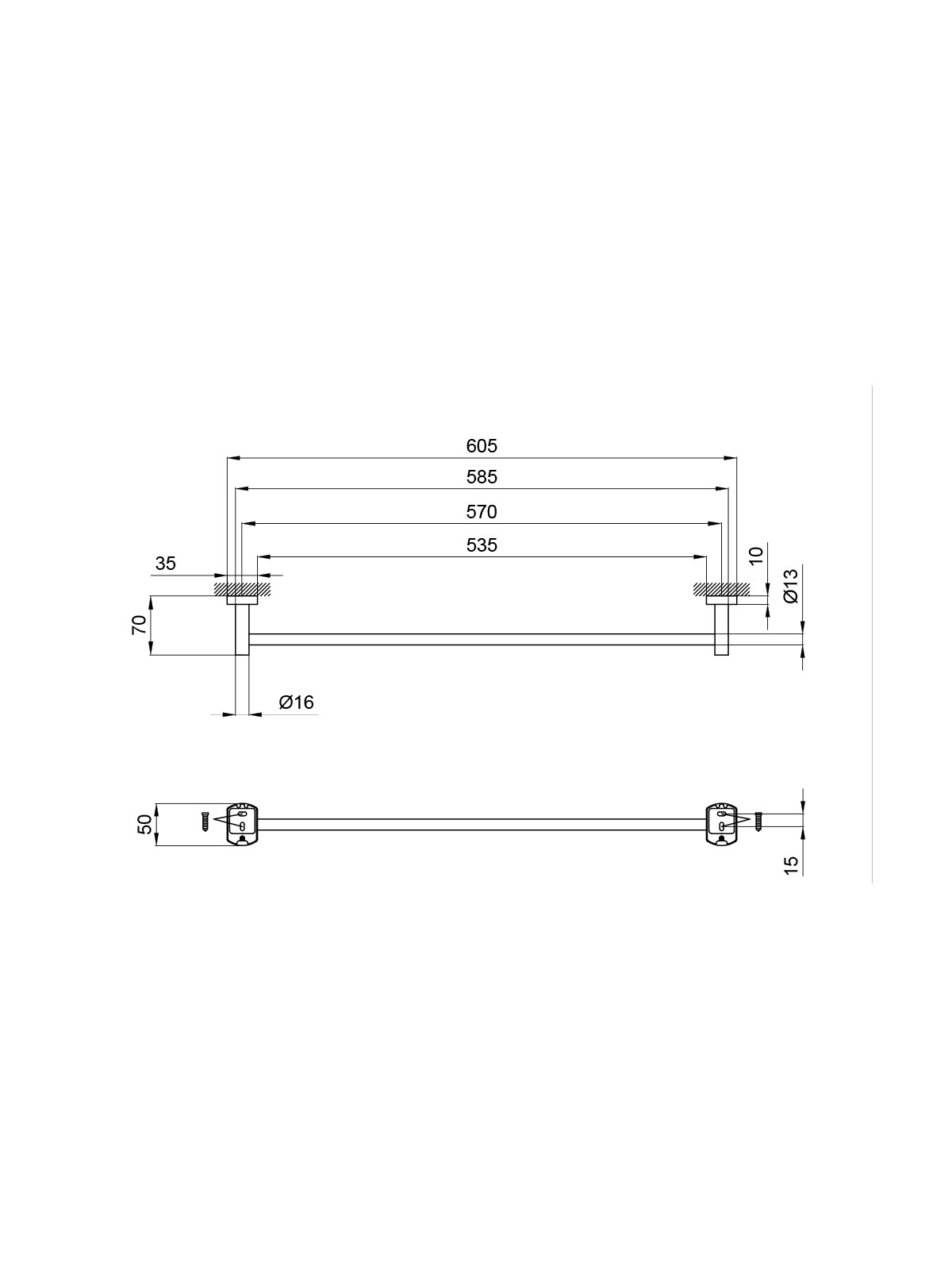 Габаритні розміри виробу (ШхГхВ), мм: 605х70х50