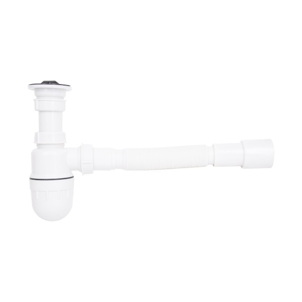 Сифон для раковини Lidz LU02 має вигляд колби, виготовлений із пластику білого кольору. Виріб має гладку внутрішню поверхню, що перешкоджає накопиченню бруду на стінках. Резервуар колби легко знімається, тому його очищення від осілих твердих частинок не складе великих клопотів. Гофрований вихід дає можливість змінювати довжину та кут труби.