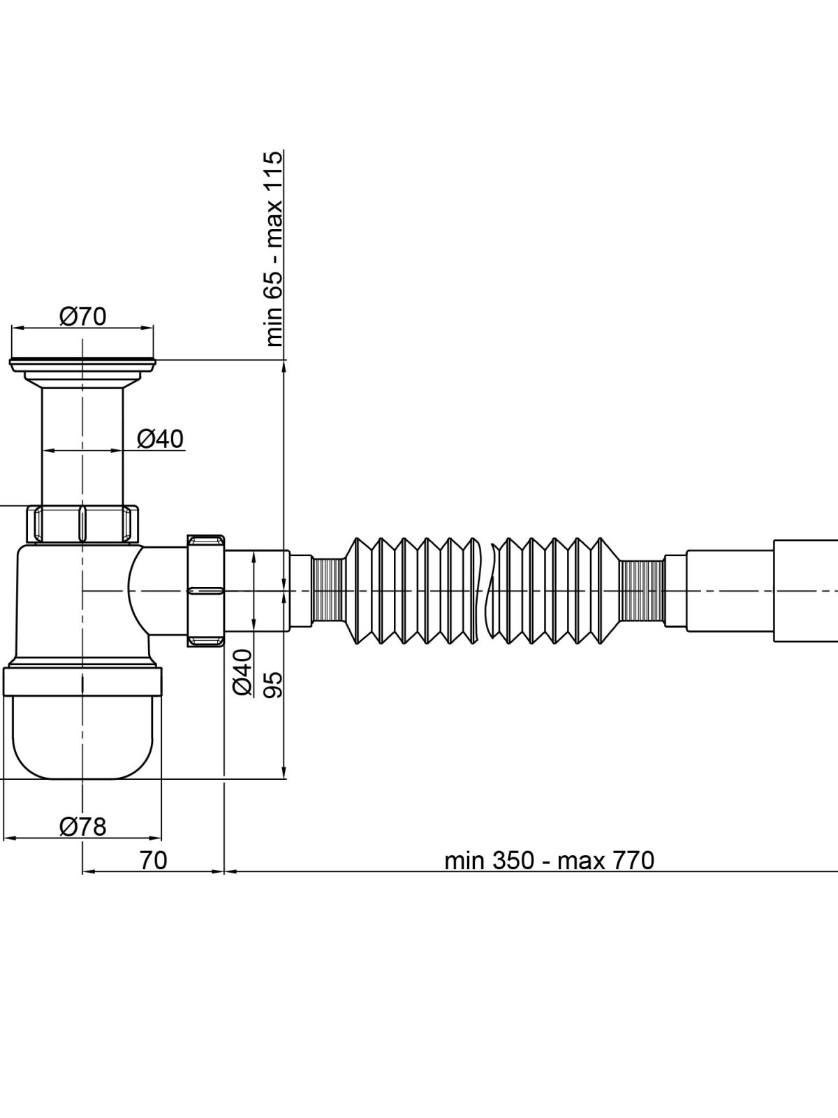 Додаткові характеристики: Довжина гофрованої труби: 350 – 770 мм.