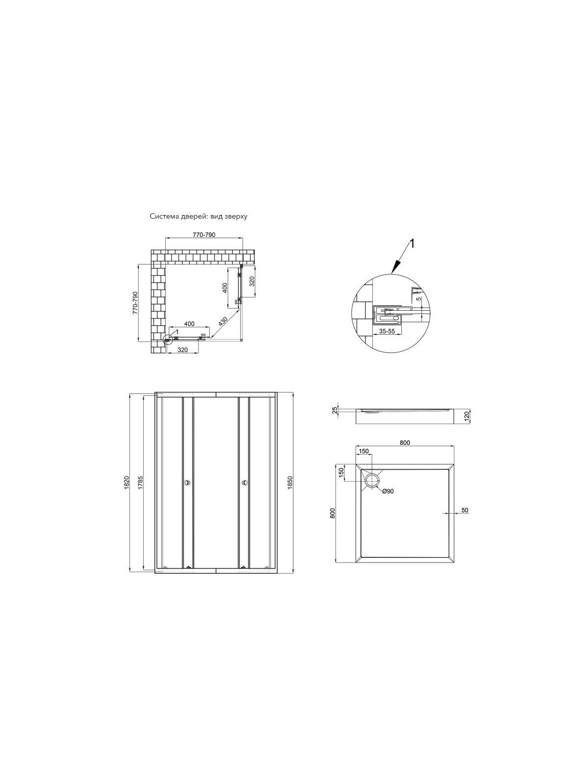 Габаритні розміри виробу (ШхГхВ), мм: 770-790х770-790х1850; 800х120х800