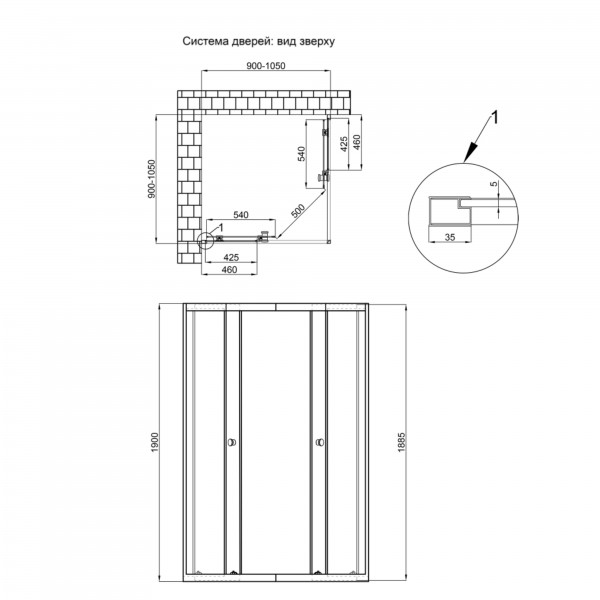 Габаритні розміри виробу (ШхГхВ), мм: 900-1050х900-1050х1900