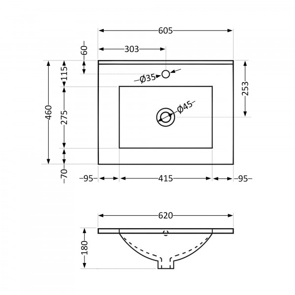 Габаритні розміри виробу (ШхГхВ), мм: 620х460х180