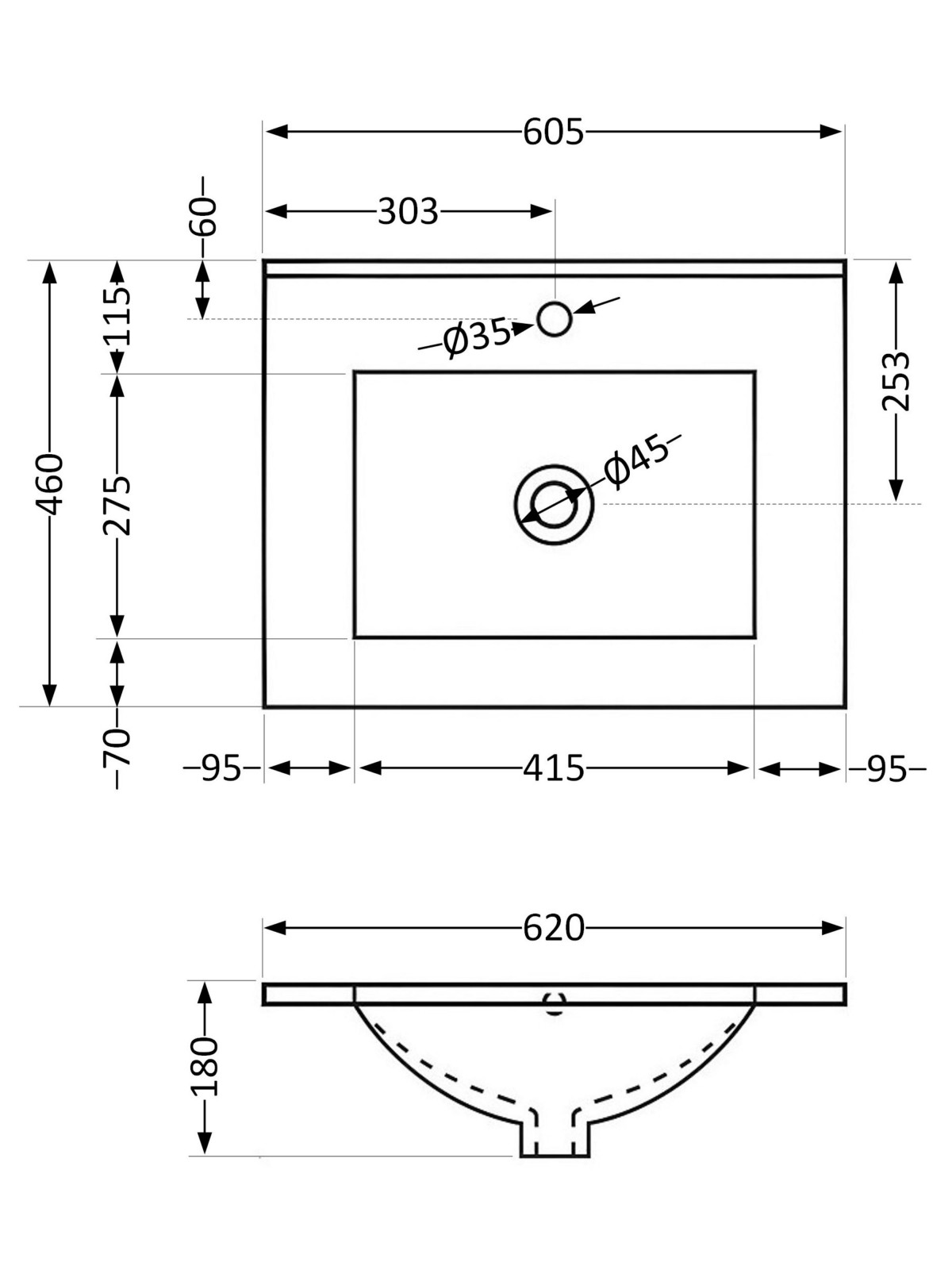 Габарити чаші (ШхДхГ), мм: 415х275х115