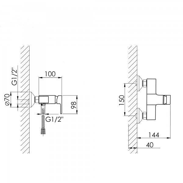 Комплектація: Змішувач, душовий шланг, лійка для ручного душу, кронштейн для ручного душу, кріплення.