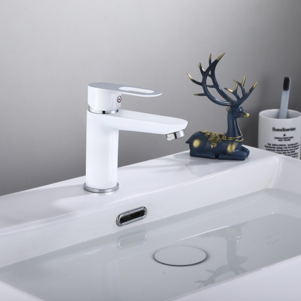 Змішувач для раковини Lidz Latwa 001 LDLAT001WHI45423 виготовлений із цинку у білому кольорі. Інтенсивність водного потоку та температура регулюються за допомогою переміщення важеля. Виріб кріпиться врізним способом за допомогою гнучкого підведення та кріплень, які комплектуються разом з ним в одне вантажне місце.