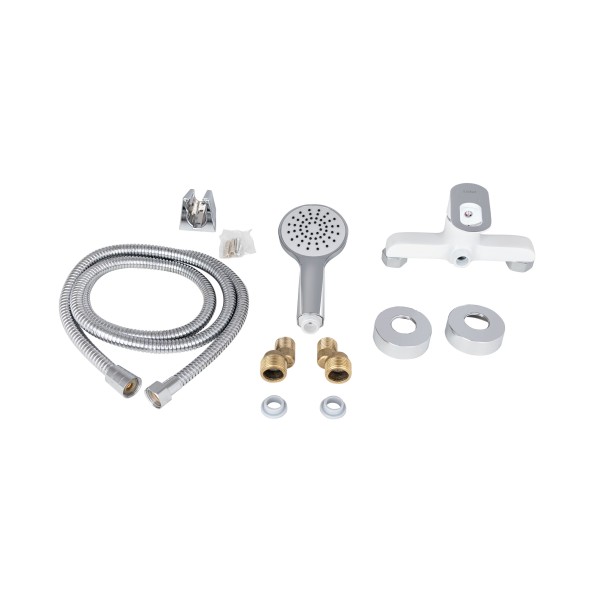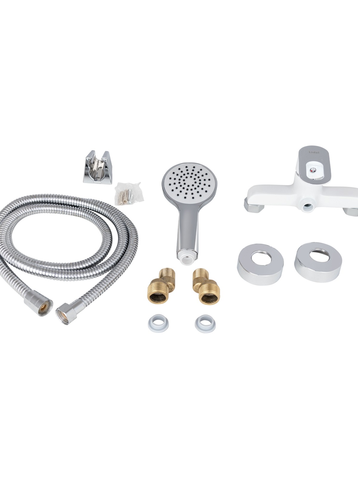 Комплектація: Змішувач, душовий шланг, лійка для ручного душу, кронштейн для ручного душу, кріплення.