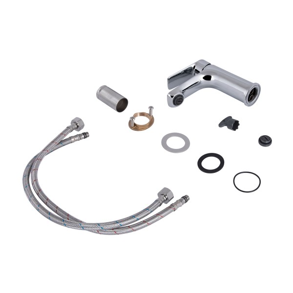 Комплектація: Змішувач, гнучка підводка, ключ для аератора, кріплення.