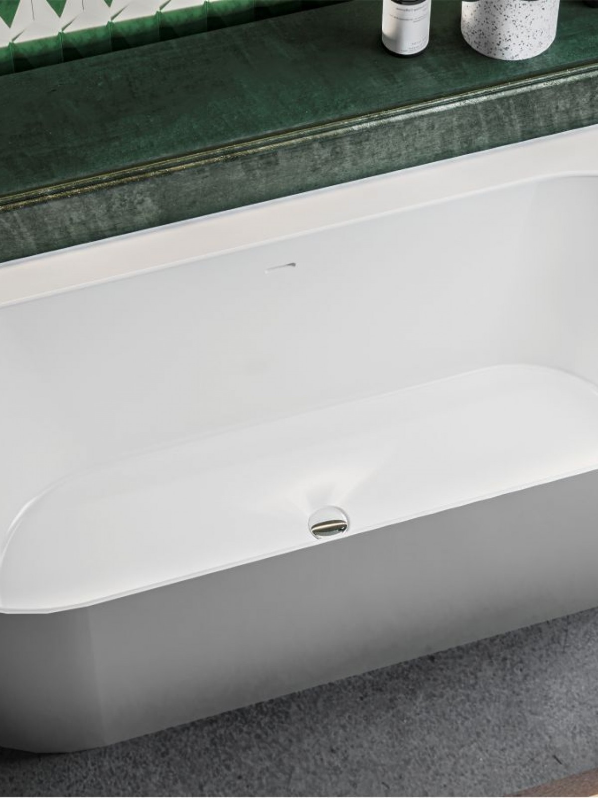 - Довговічність матеріалу. Ванни з литого мармуру є ремонтопридатними, стійкими до барвників і сонячних променів.