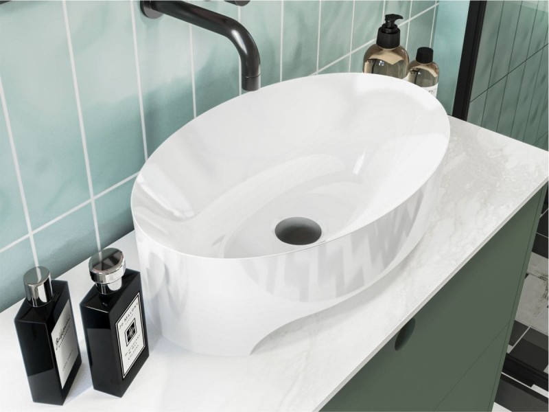 Овальний за формою чаші раковина має тип монтажу - накладний, врахуйте це перед замовленням меблів у ванну кімнату.