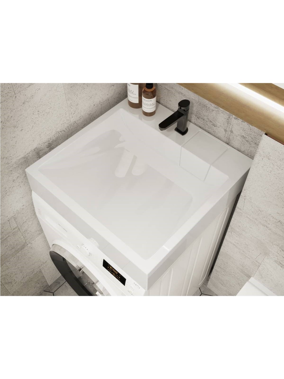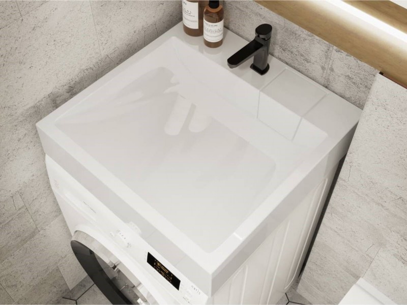 Прямокутний за формою чаші раковина має тип монтажу - над пральною машиною;підвісний, врахуйте це перед замовленням меблів у ванну кімнату.