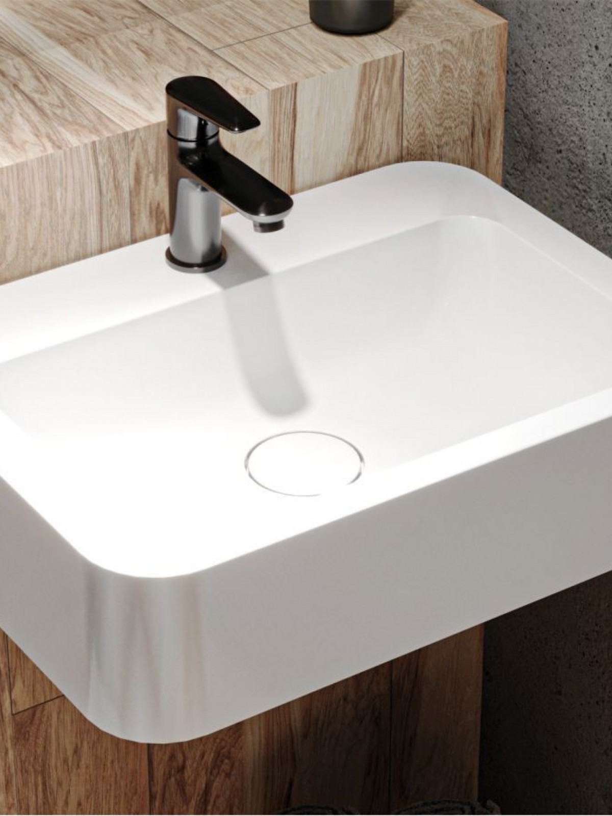 Прямокутний за формою чаші раковина має тип монтажу - накладний;підвісний, врахуйте це перед замовленням меблів у ванну кімнату.