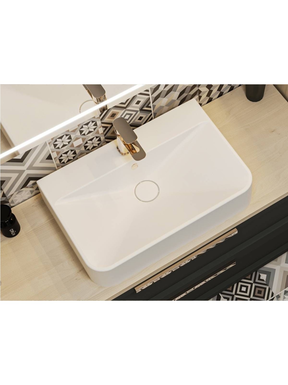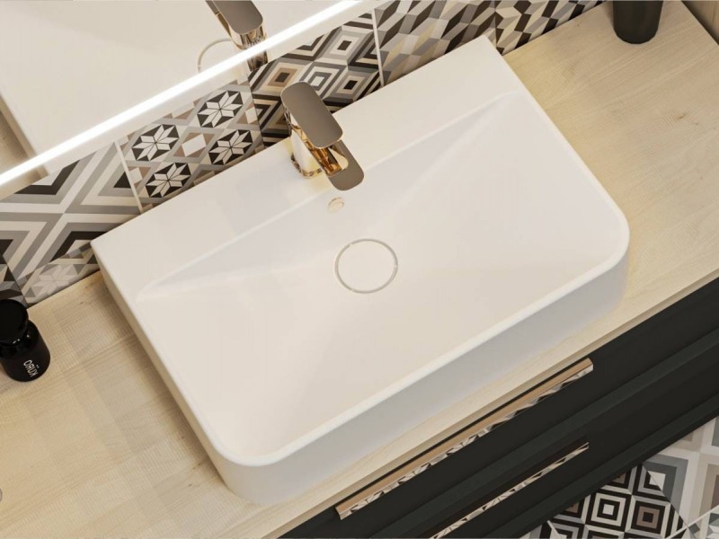 Прямокутний за формою чаші раковина має тип монтажу - на тумбу;підвісний, врахуйте це перед замовленням меблів у ванну кімнату.