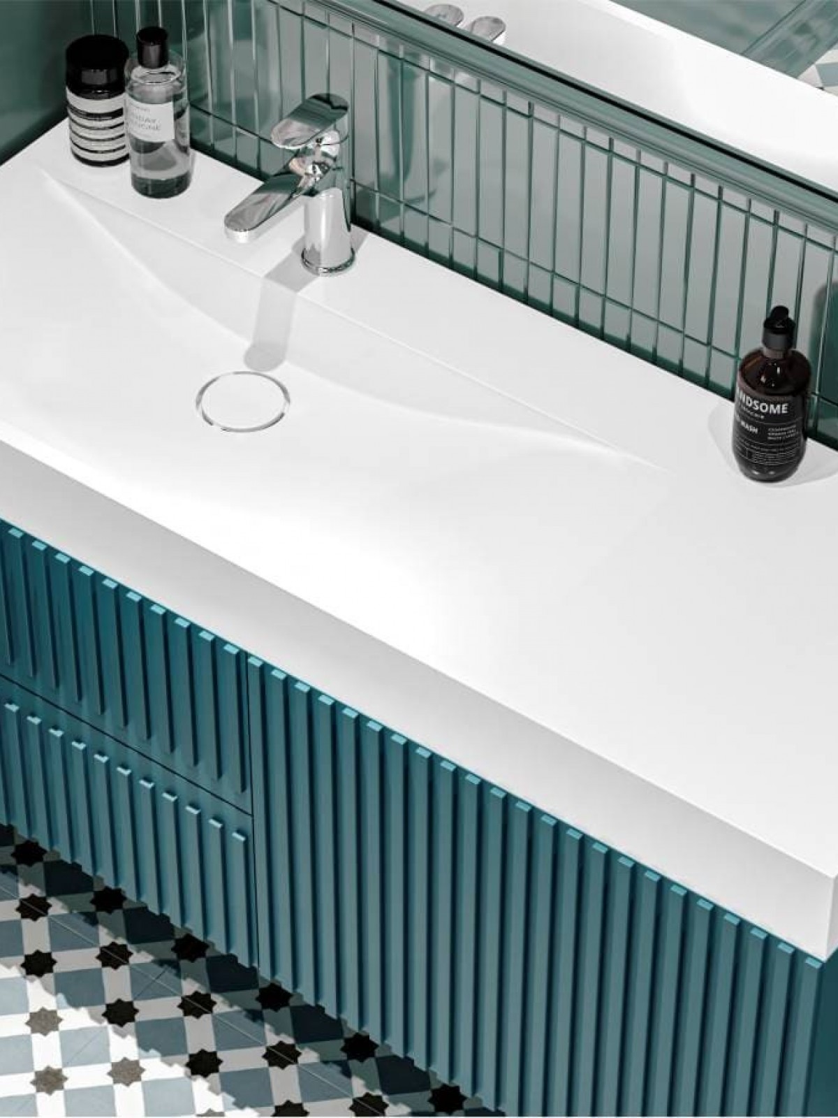 Прямокутний за формою чаші раковина має тип монтажу - врізний;на тумбу;підвісний, врахуйте це перед замовленням меблів у ванну кімнату.