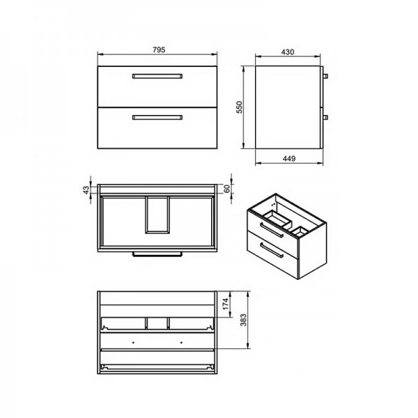 088734O FRESH Тумба 80, колір дуб з чорними ручками, без раковини (1 сорт)