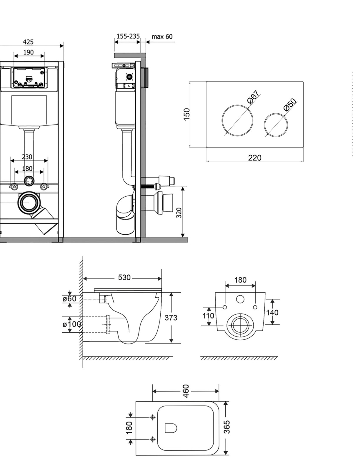 Тип виробу: Набір інсталяція + унітаз із сидінням