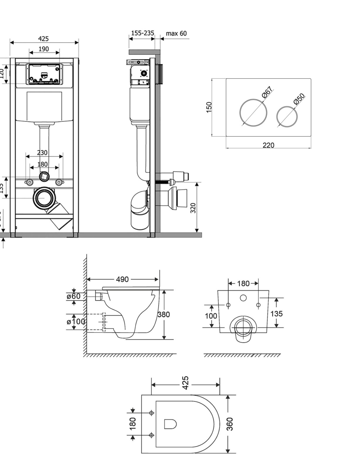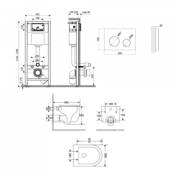 Матеріал: Метал/ABS пластик - інсталяція; ABS пластик - панель змиву; кераміка - унітаз; дюропласт - сидіння для унітазу