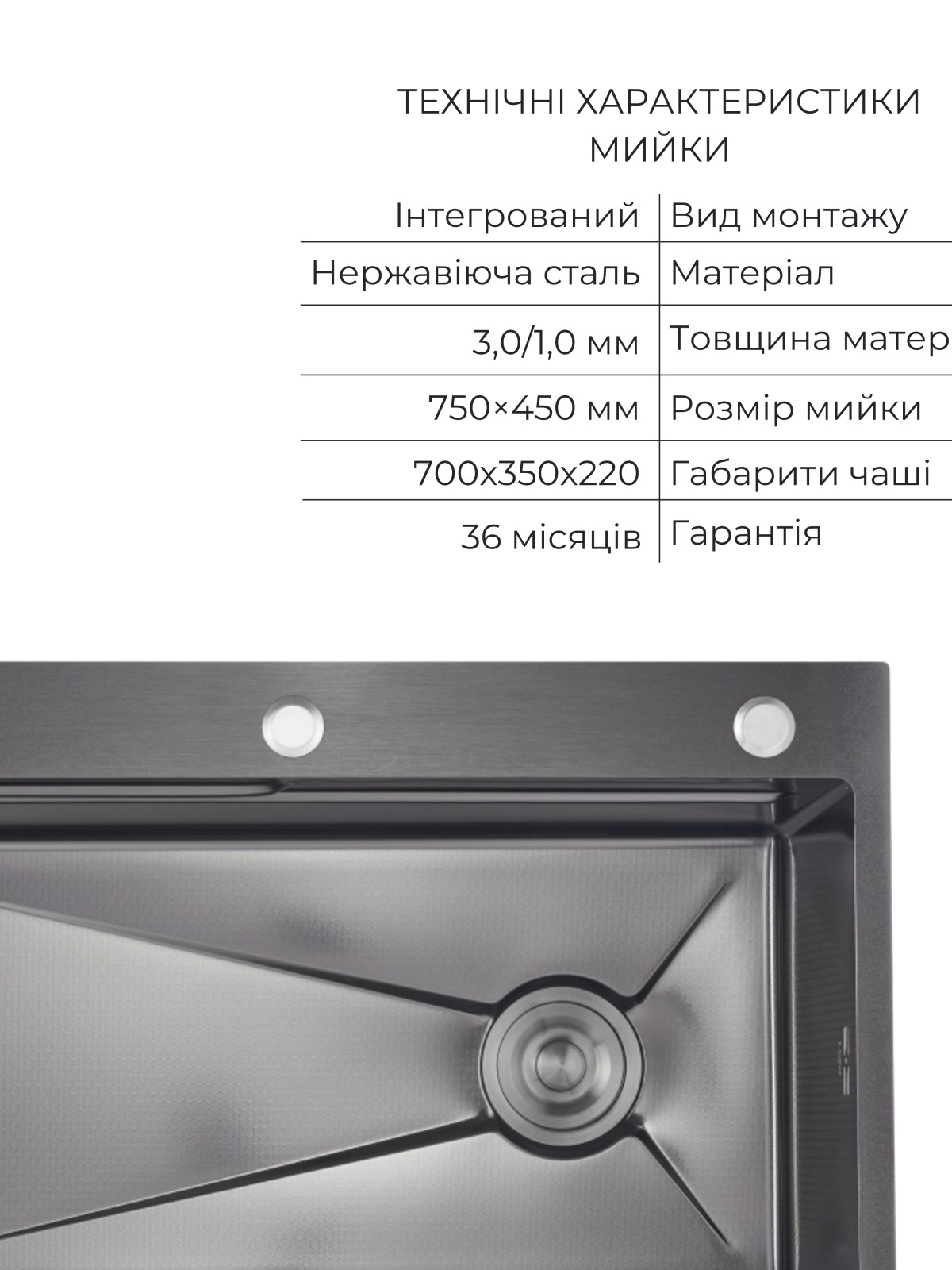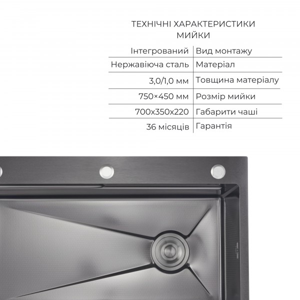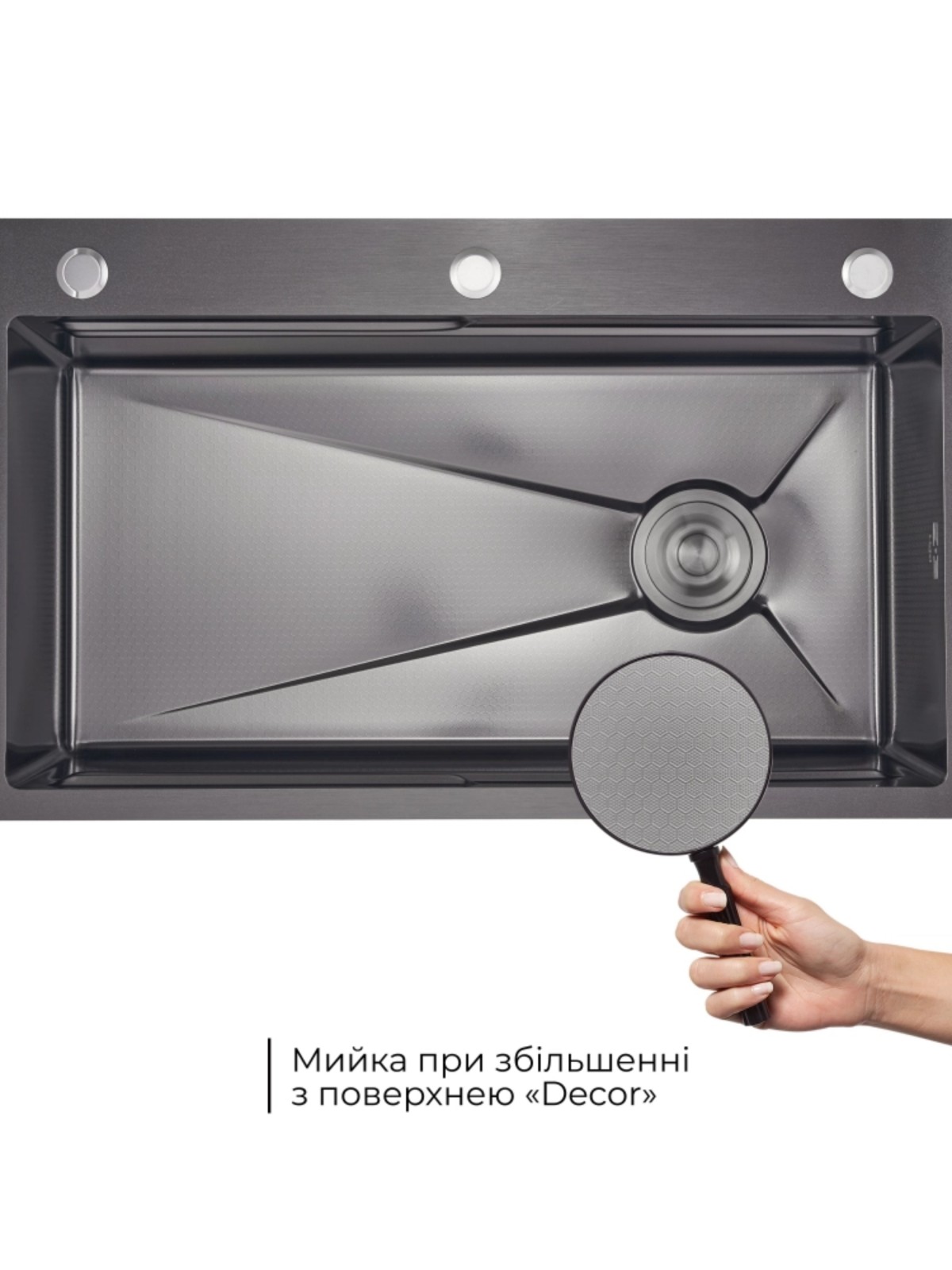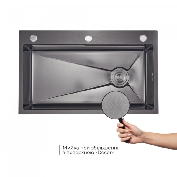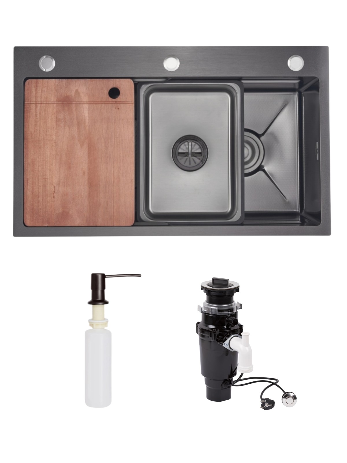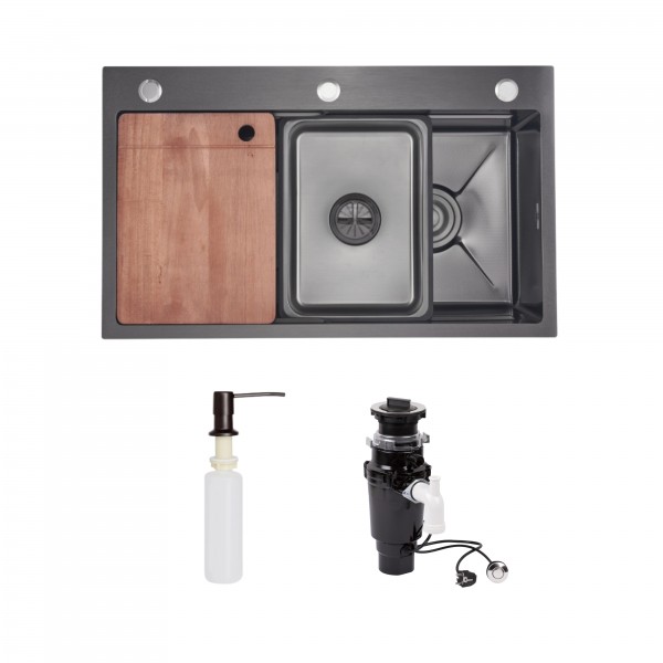 Інтегрована мийка Lidz Handmade H7545B виконана в ефектному покритті Black PVD із декоративною текстурою Honeycomb. Стійка до механічних пошкоджень поверхня зберігає насичений колір та блиск навіть при інтенсивному використанні. У комплекті - подрібнювач Lidz (BLA), що забезпечує зручну утилізацію харчових відходів. Таке поєднання поєднує практичність, довговічність та продуманий підхід до організації робочого простору кухні.