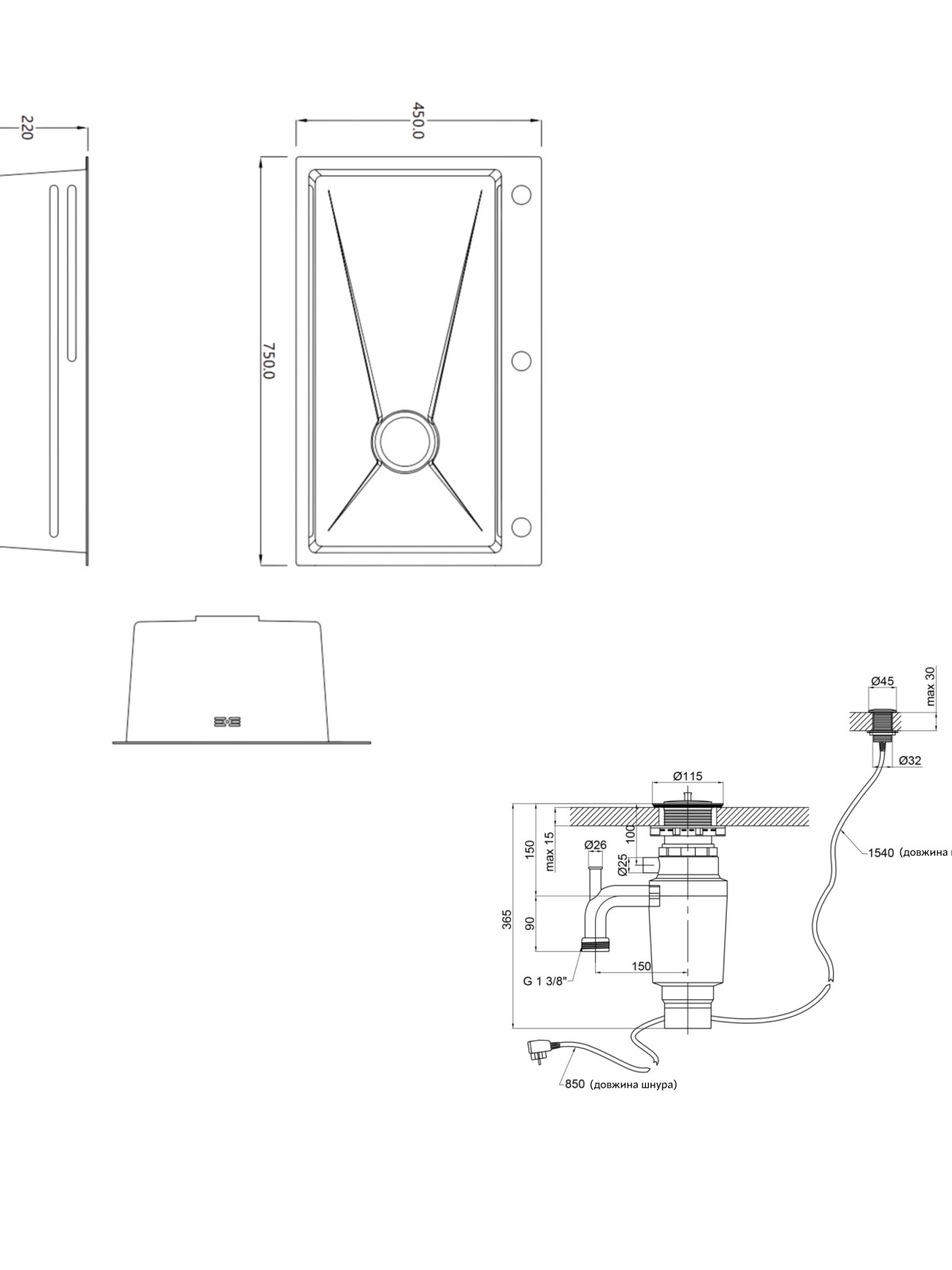 Матеріал: Нержавіюча сталь – мийка; метал - подрібнювач