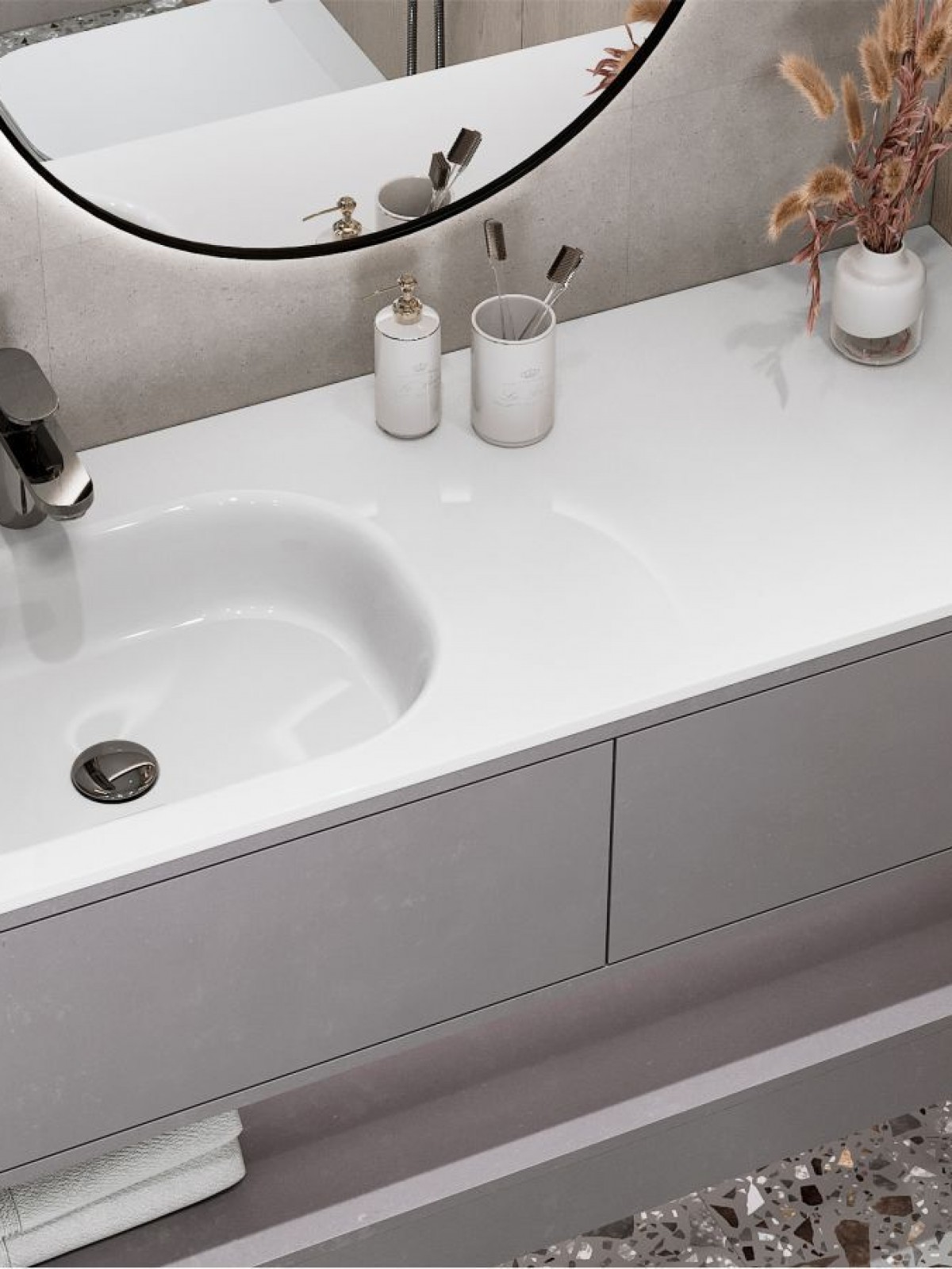 Глянец раковина зі штучного каменю гармонійно доповнить дизайн сучасної ванної кімнати. Матеріал умивальника - Miramarble.