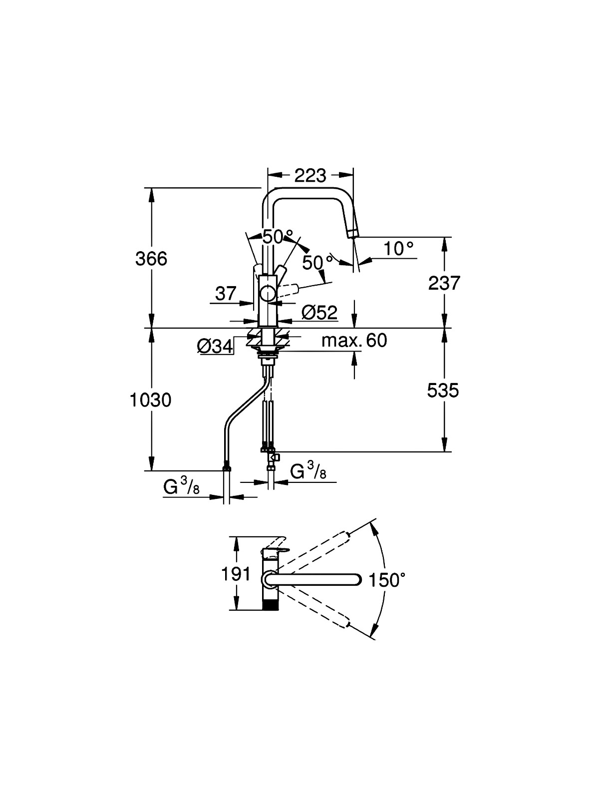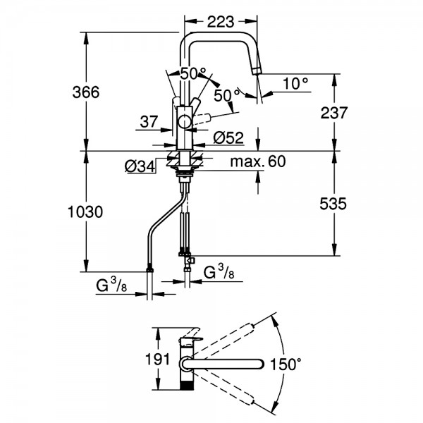 30583000 GROHE Blue Pure Eurosmart U-spout Змішувач з можливістю підключення до фільтру, хром зразок (1 сорт)