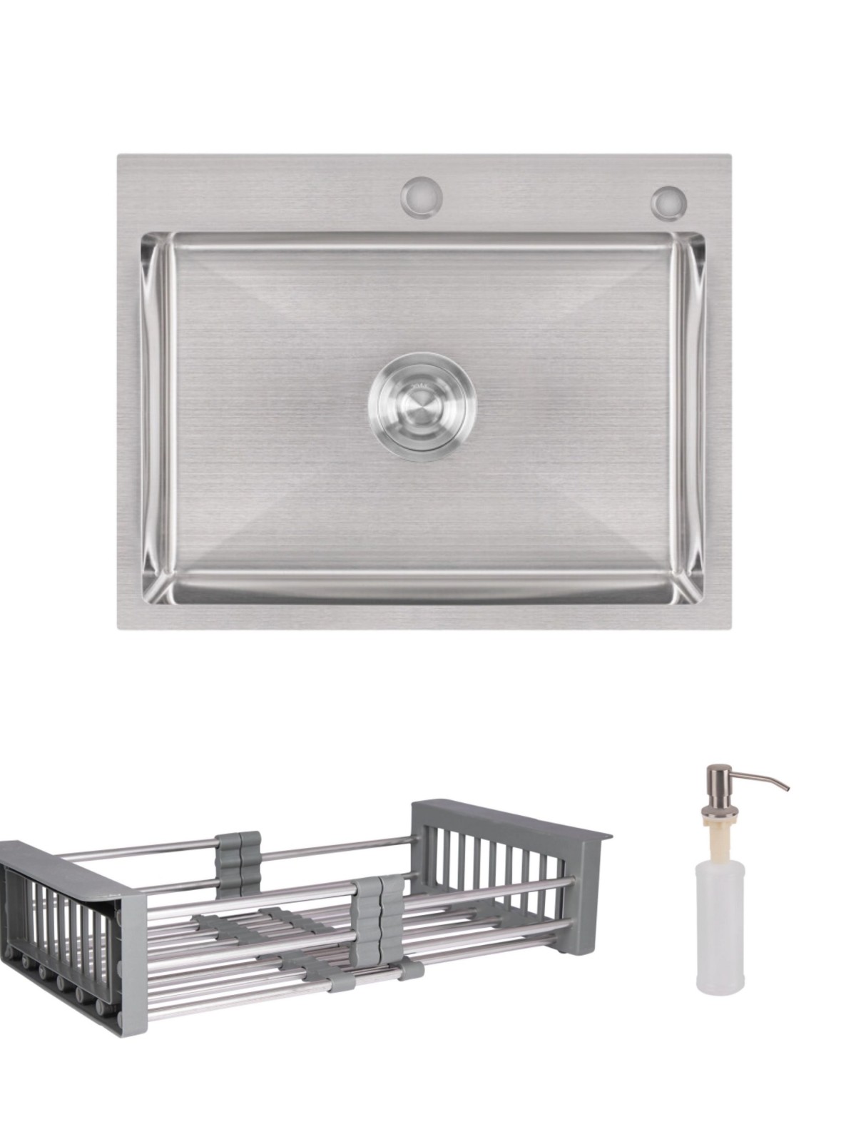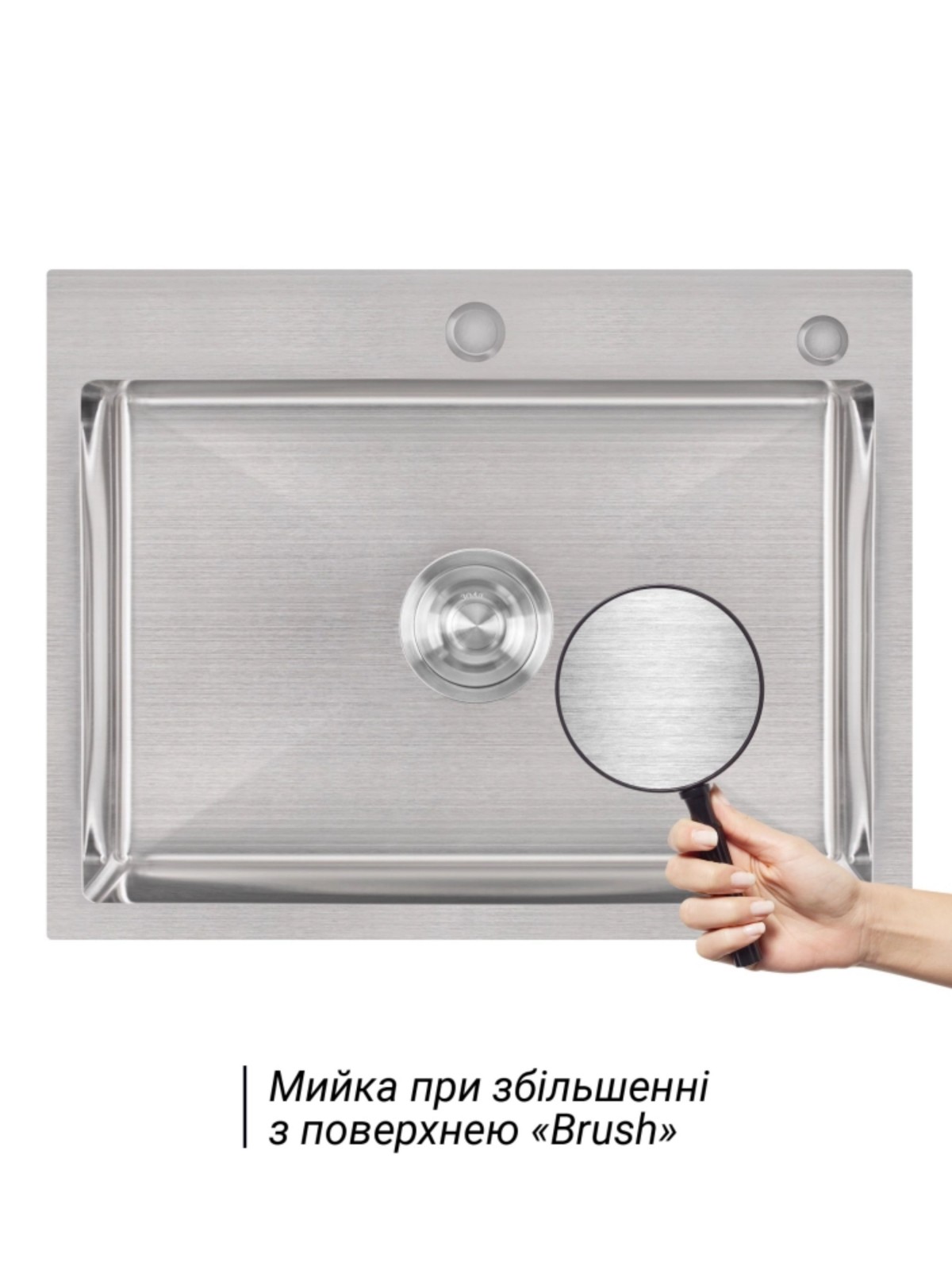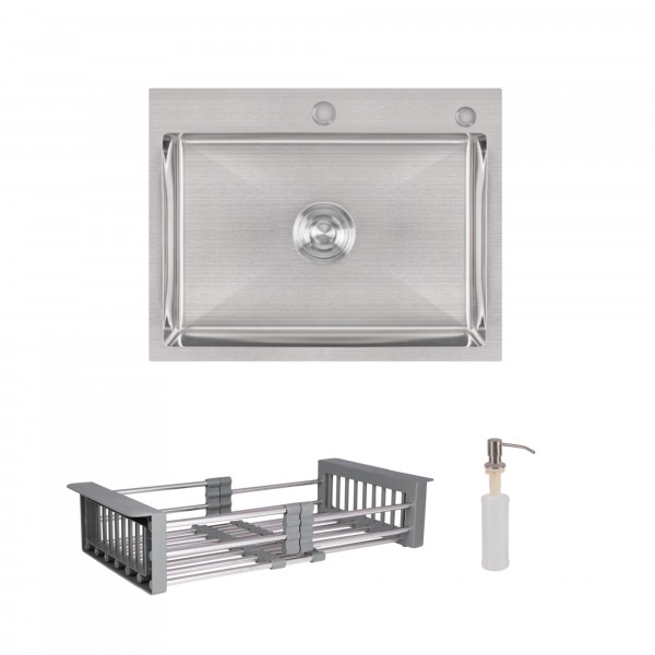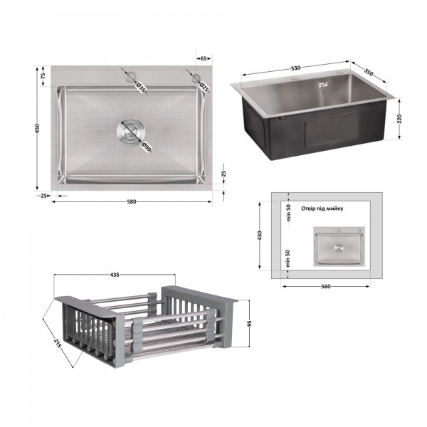 Матеріал: Нержавіюча сталь - мийка; латунь / пластик - дозатор; нержавіюча сталь / пластик - кошик