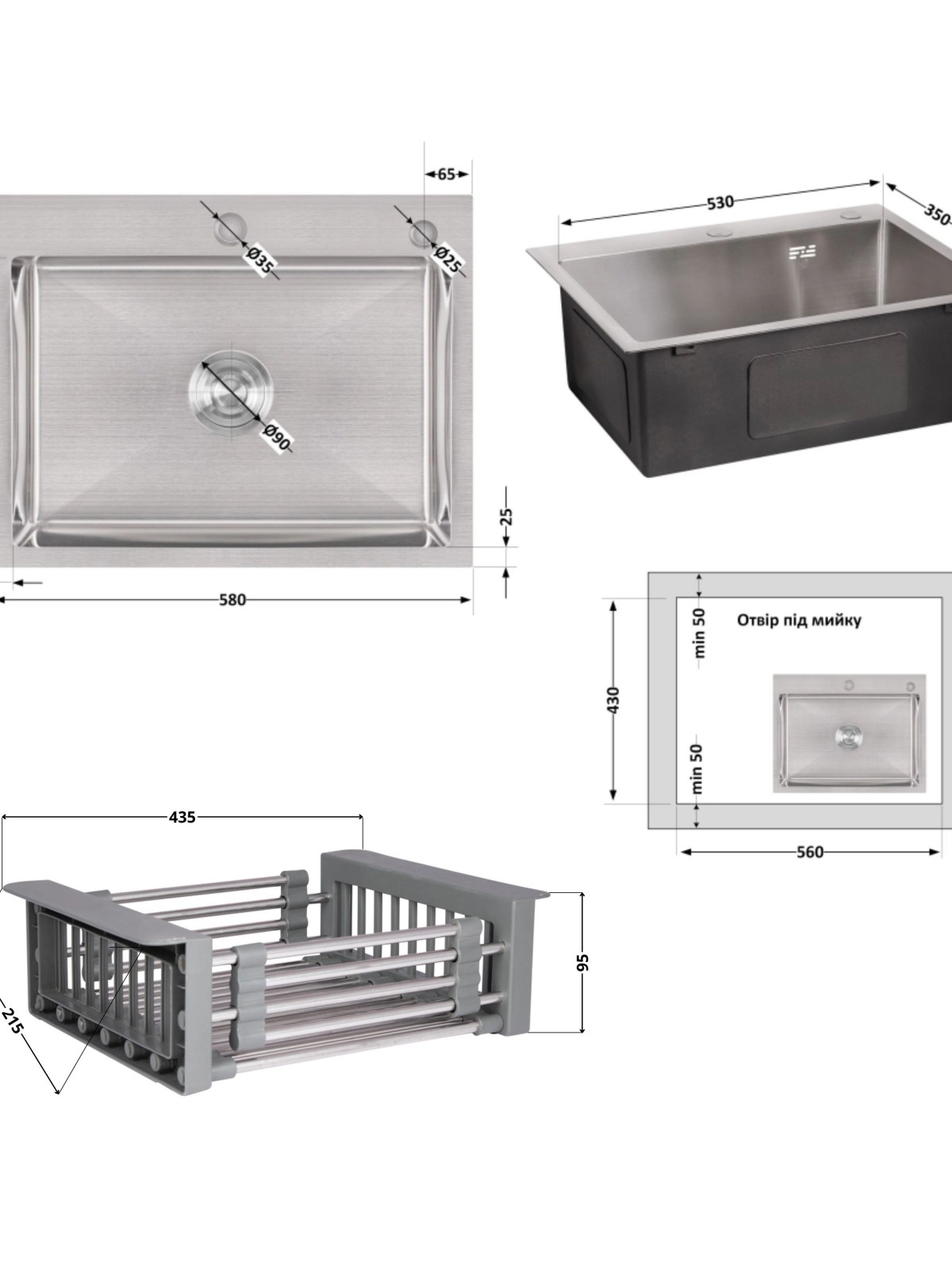 Колір: Сталь - мийка; сірий - кошик