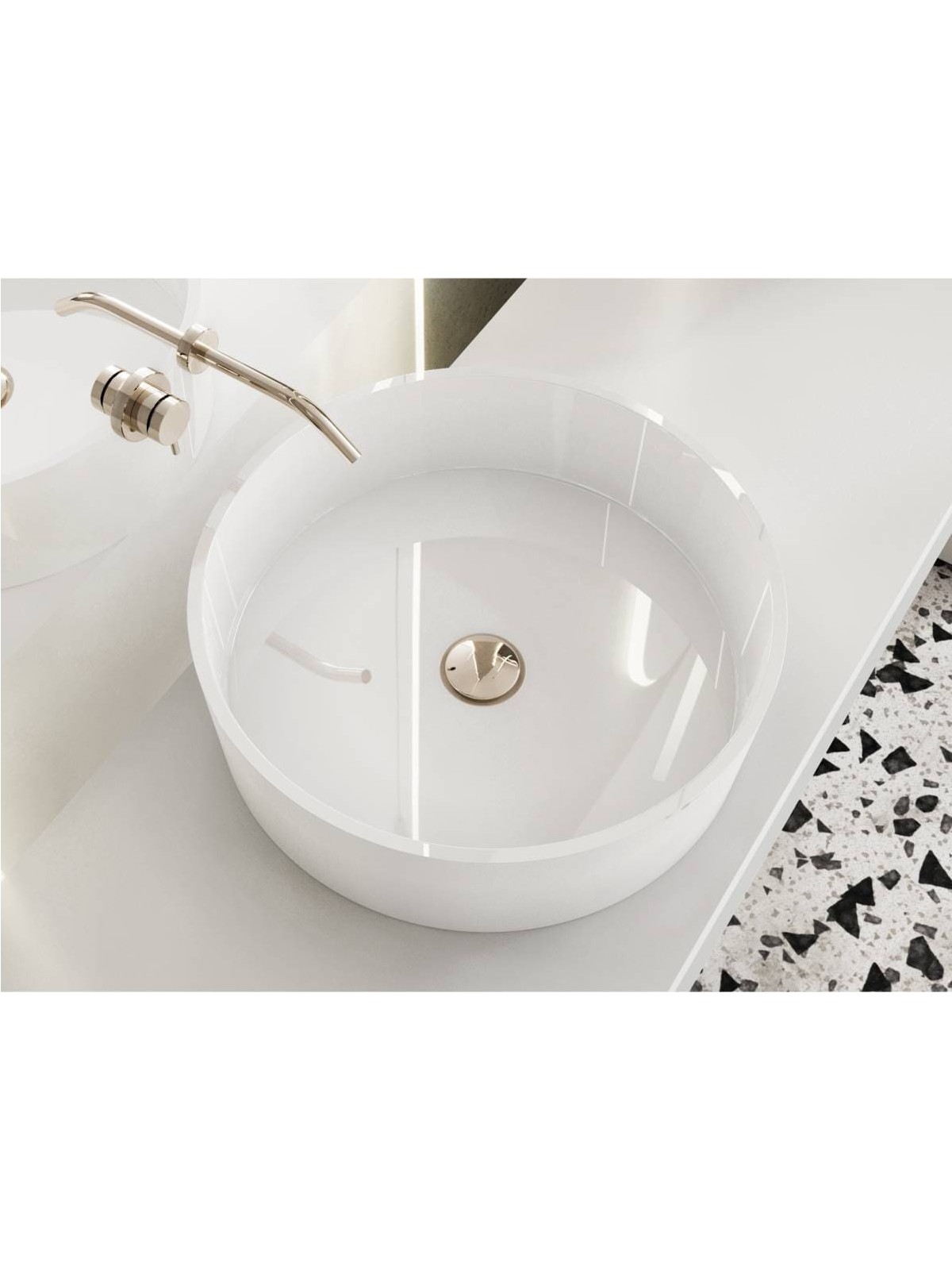 Глянец раковина зі штучного каменю гармонійно доповнить дизайн сучасної ванної кімнати. Матеріал умивальника - Miramarble.