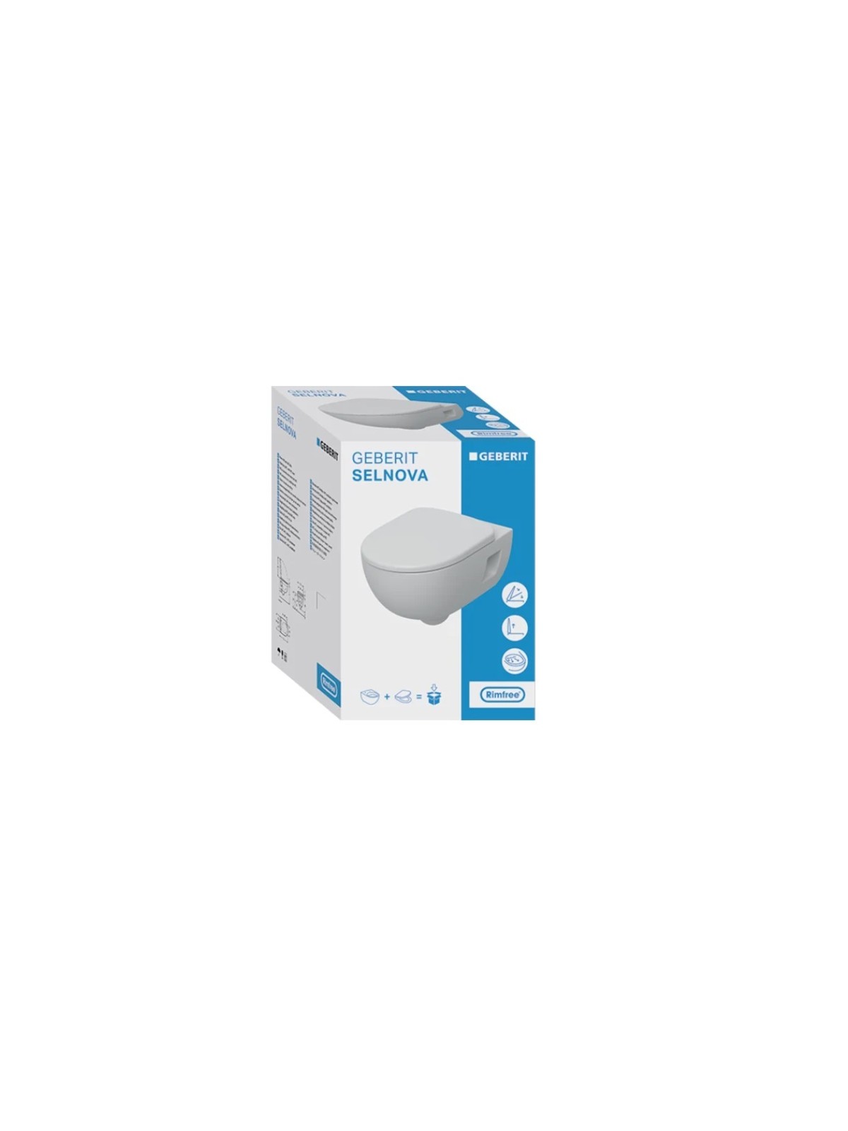 501.750.00.1 Selnova Комплект підвісного унітазу воронкоподібний, Rimfree, напівзакрита форма, з сидінням з кришкою 53см, Білий (1 сорт)