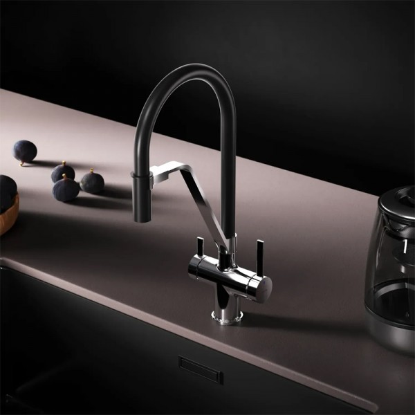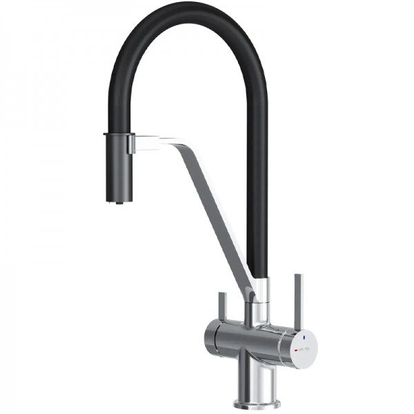 F8F07802 Func, Змішувач для кухні з каналом для питної води і гнучким виливом, хром,чорн (1 сорт)