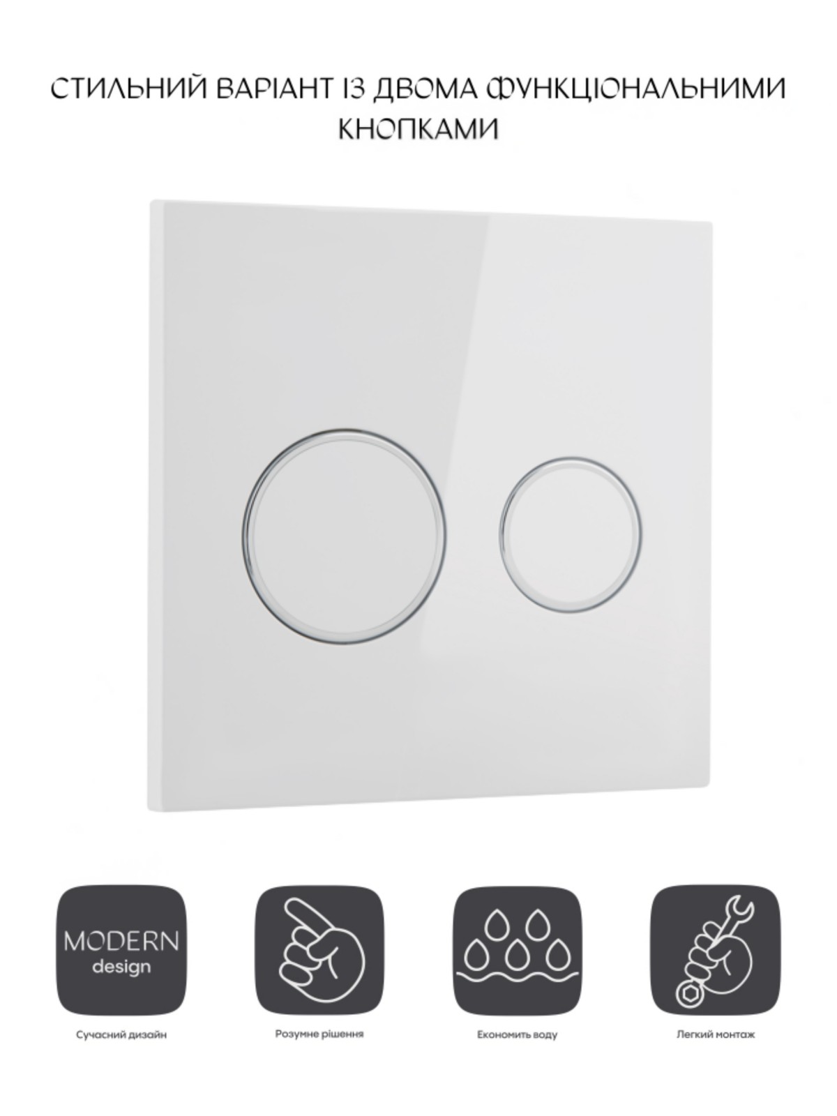 Панель змиву для унітаза Qtap Nest UNI QT0211P01V1176W - це сучасне рішення при оснащенні санвузла. Виріб виготовлено з якісного ABS пластику, тип управління зливом - механічний. Особливістю панелі є двохклавішний блок змиву, який дозволяє економити витрати води. Панель змиву з глянцевою білою поверхнею гармонійно поєднується з меблями ванної кімнати і облицювальною плиткою.