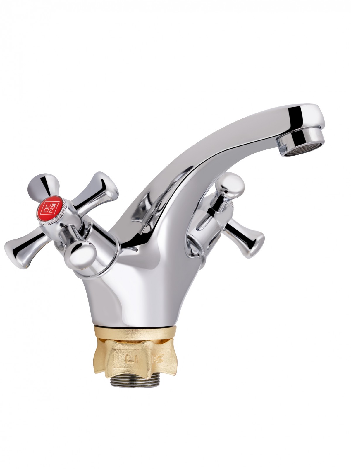 Змішувач для раковини Lidz (CRM) 75 21 161F виготовлений з цинку. Глянцева хромована поверхня надає змішувачу не тільки довговічність, а й привабливий зовнішній вигляд. Він монтується в отвір для змішувача на пристінному бортику умивальника або на стільниці. Напір і температура води регулюються поворотом зручних ручок. Підключення води відбувається через гнучкі шланги, які входять в комплект поставки. Змішувач виконано в сучасному стилі, він зручний у використанні.